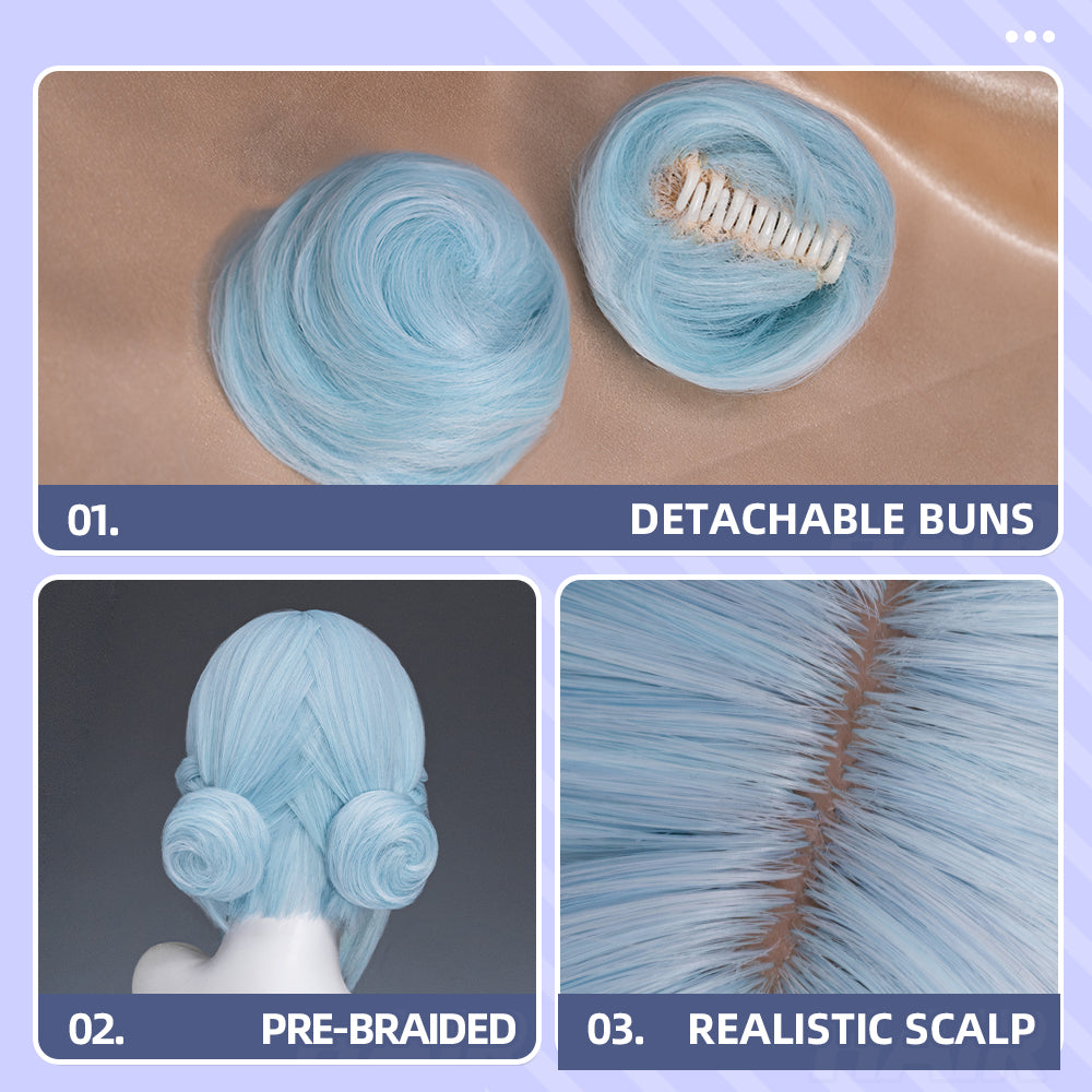 【Ready For Ship】DokiDoki Game Genshin Impact Cosplay Ineffa Blue Wig Headphones Accessory