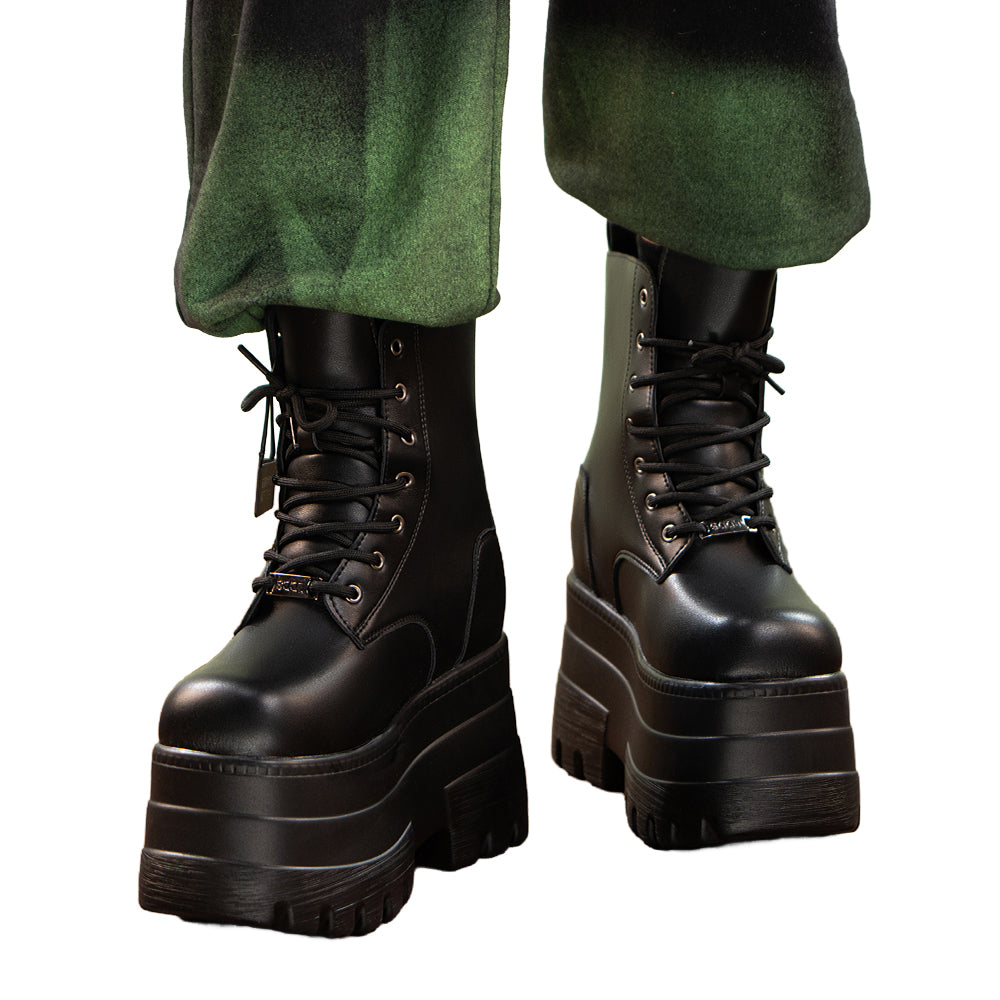 【19 CM】DokiDoki Height Increasing Shoes / Elevator Shoes Martin Boots Black White Invisible Thick-Soled 19 CM Platform Shoes