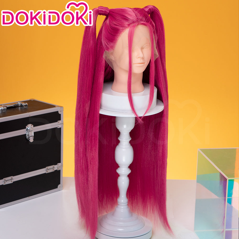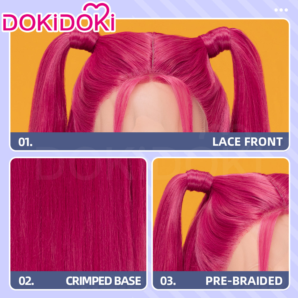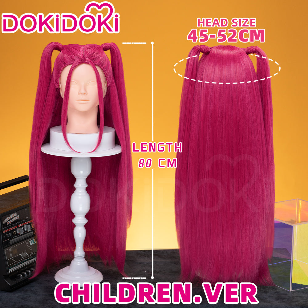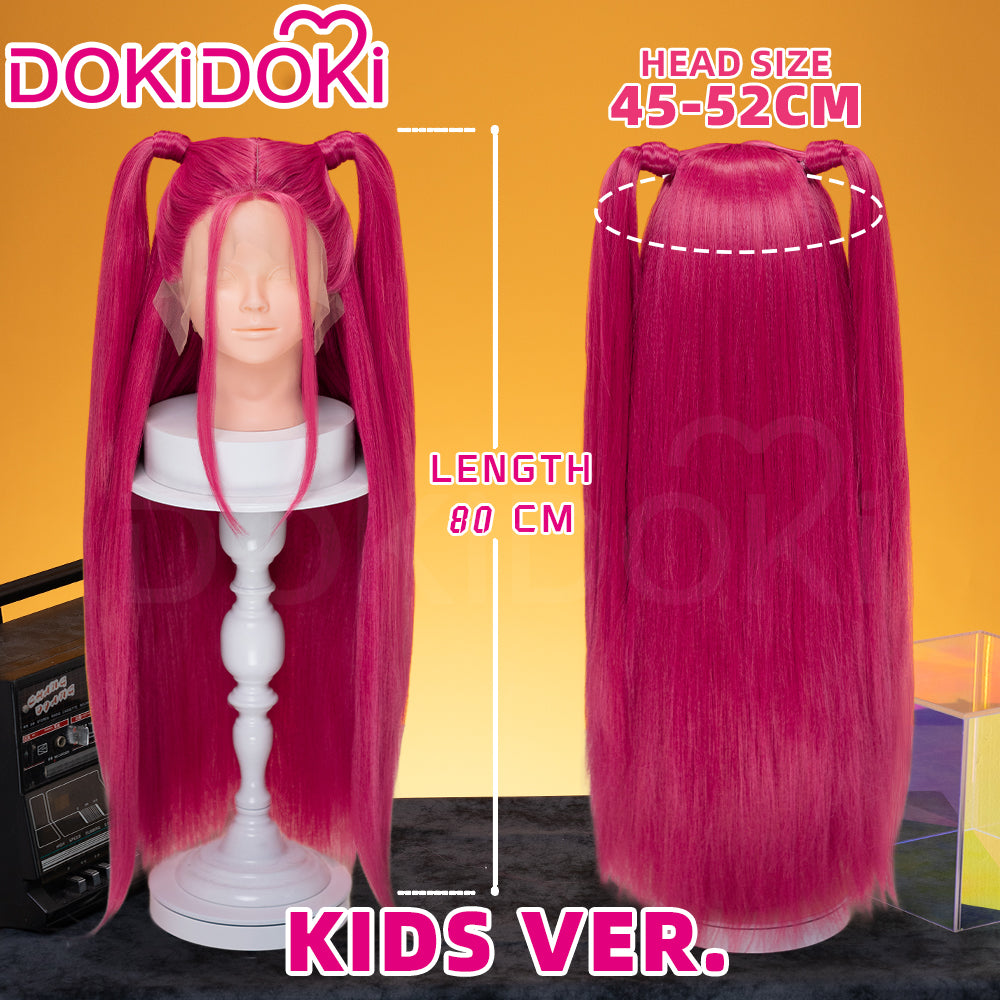 【Front Lace Ver Ready For Ship】【80 CM】【Front Lace】【Kids Version】DokiDoki Movie Anime Cosplay Women Wig Long Pink Straight Hair Two Ponytails