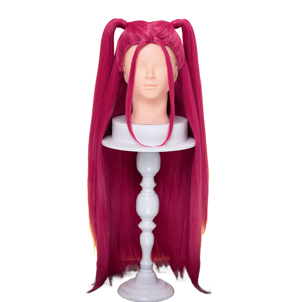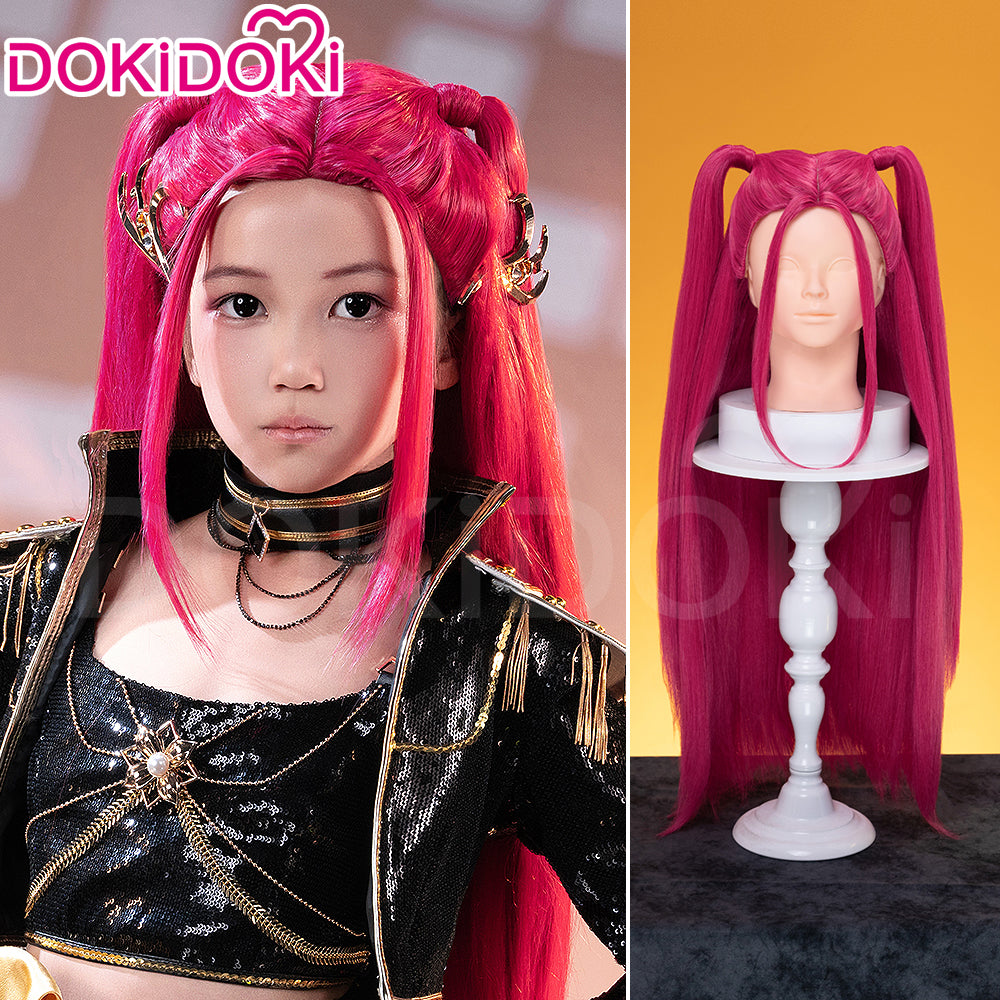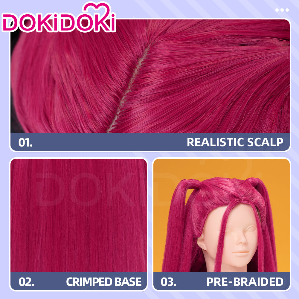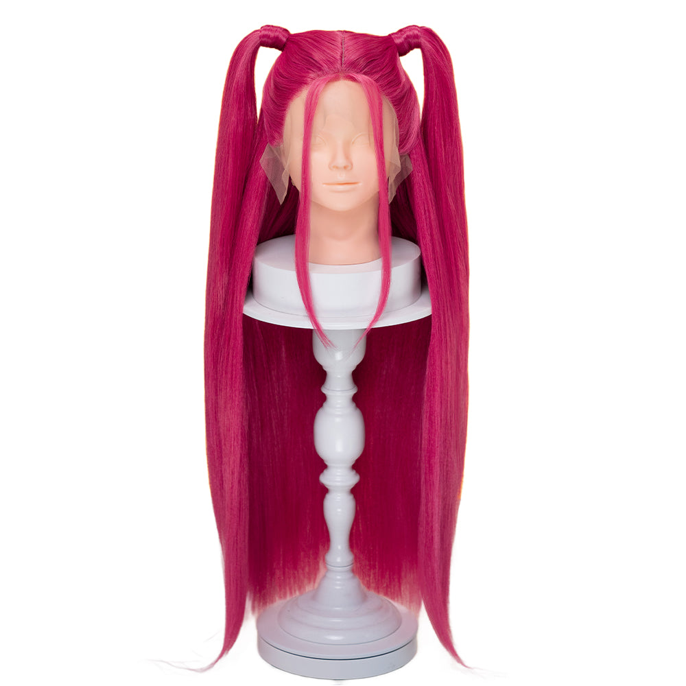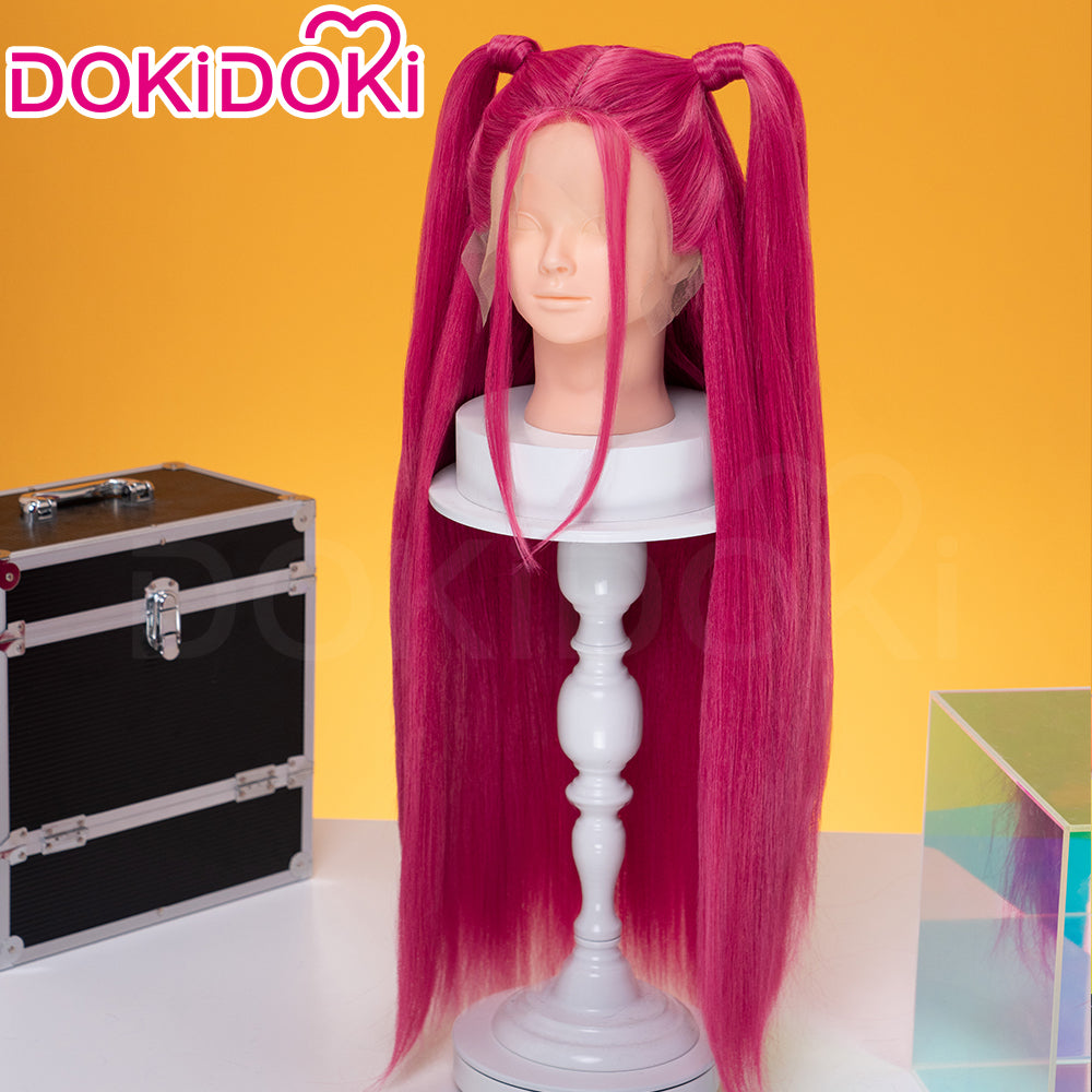 【Front Lace Ver Ready For Ship】【80 CM】【Front Lace】【Kids Version】DokiDoki Movie Anime Cosplay Women Wig Long Pink Straight Hair Two Ponytails