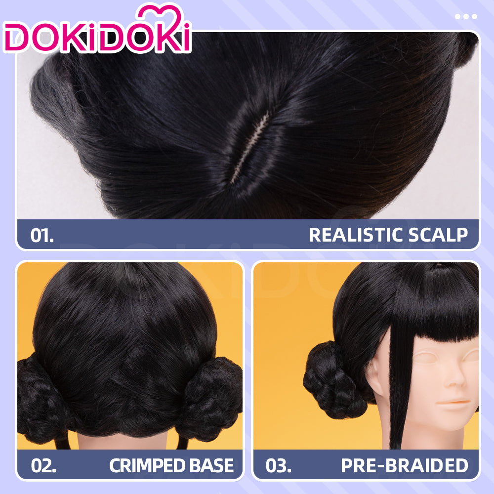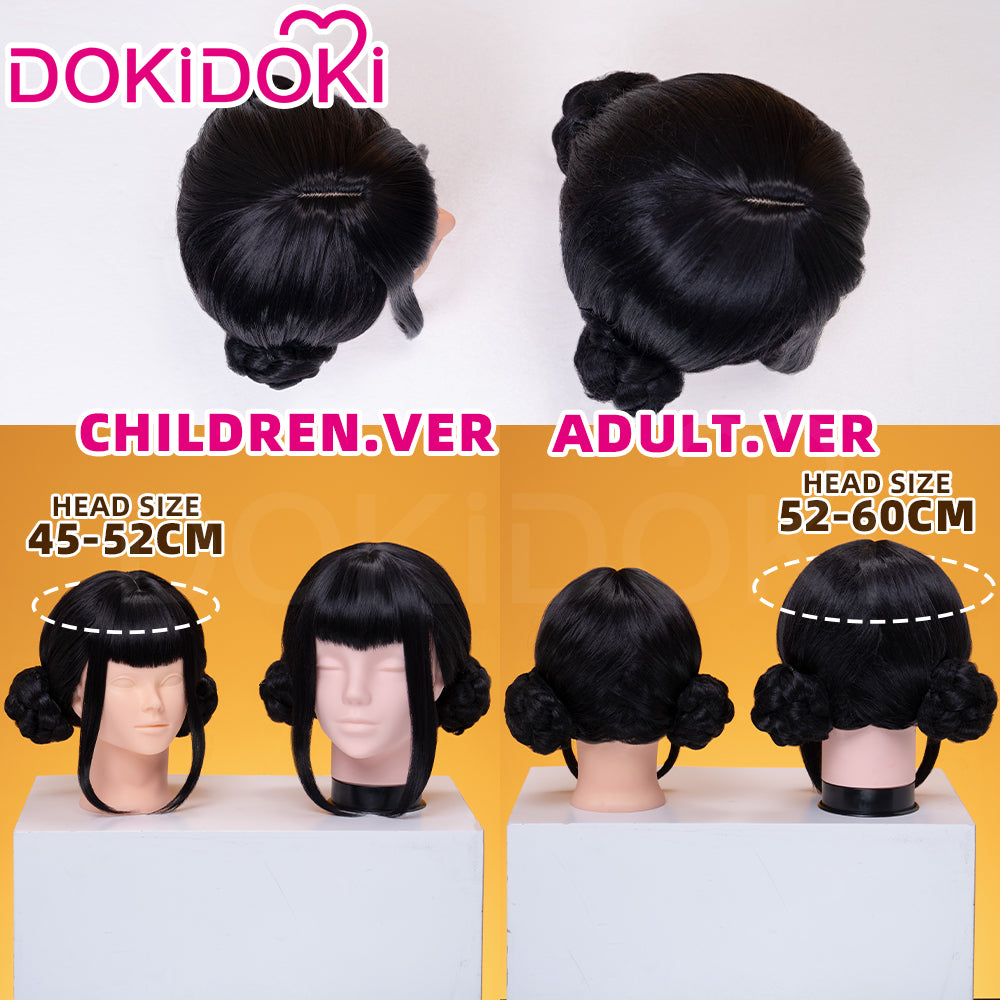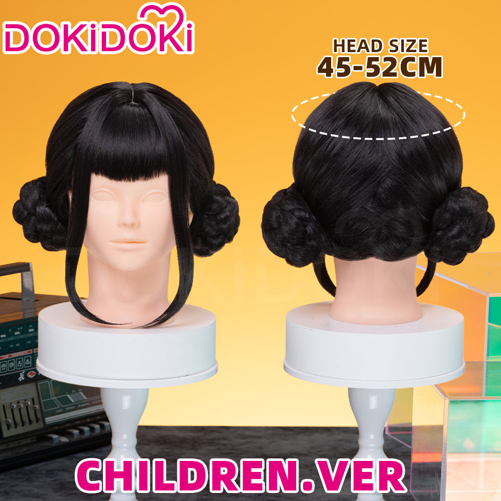 【Ready For Ship】【Kids Version】DokiDoki Movie Anime Cosplay Women Wig Short Black Hair Double Buns