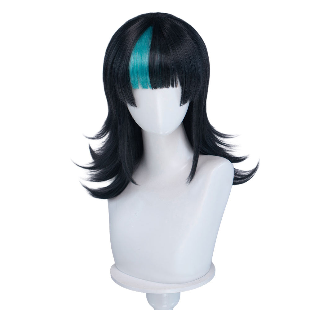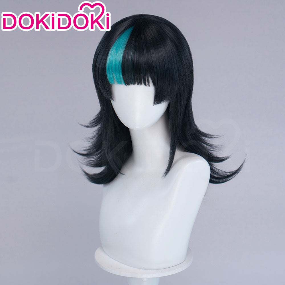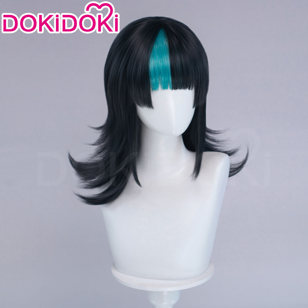 DokiDoki Anime Cosplay Wig Long Curly Black Cyan Highlight Hair