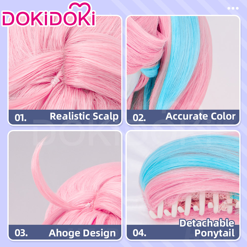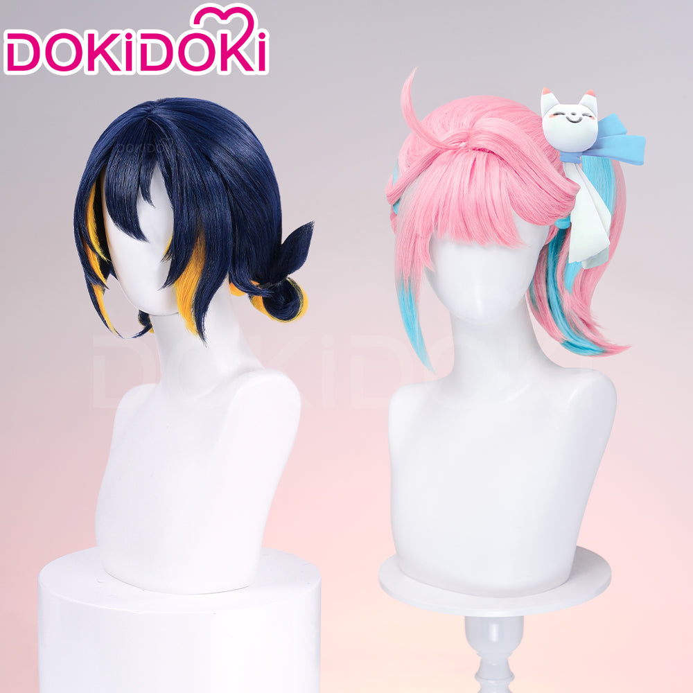 DokiDoki Game Cosplay Girl Group ANTIFRAGILE Wig Short Blue Pink Yellow Hair Rainy Day