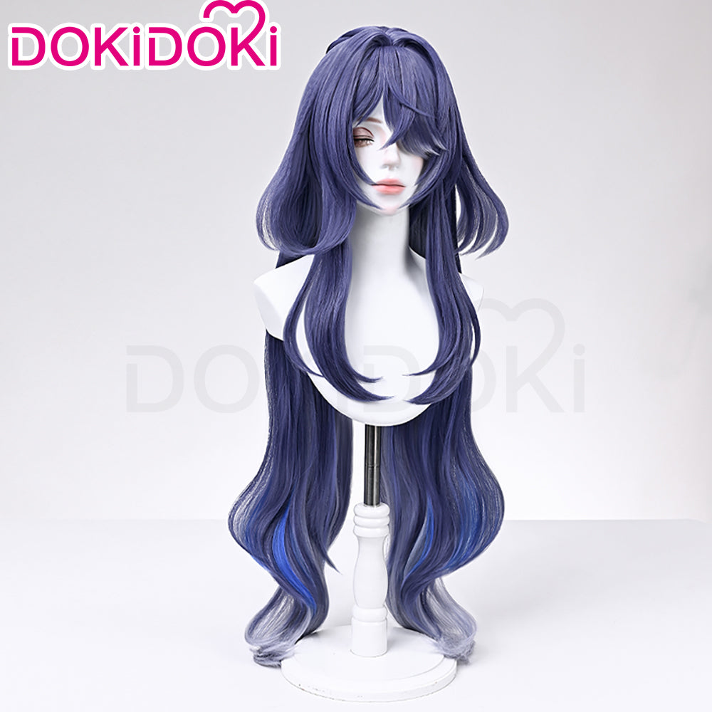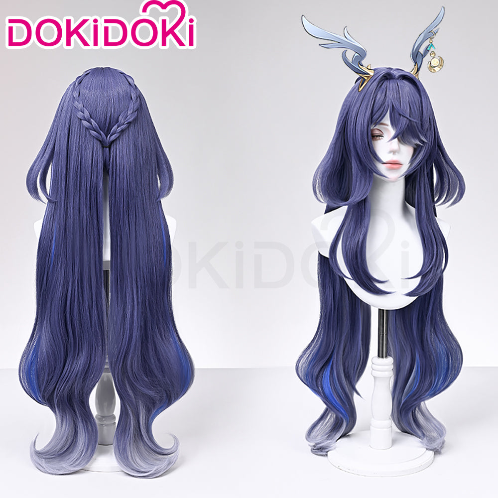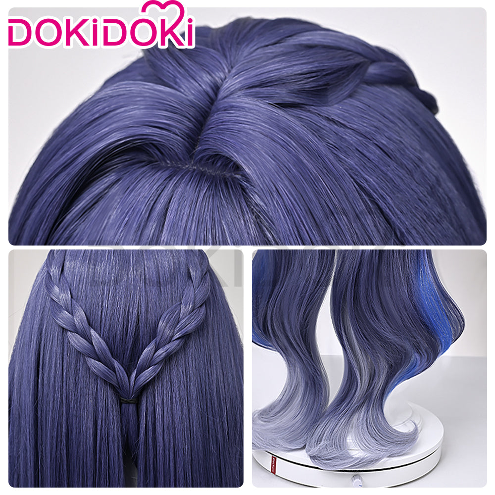 DokiDoki Game Genshin Impact Cosplay Lauma Wig Long Curly Gray Purple Blue Highlight Hair Song of the Welkin Moon
