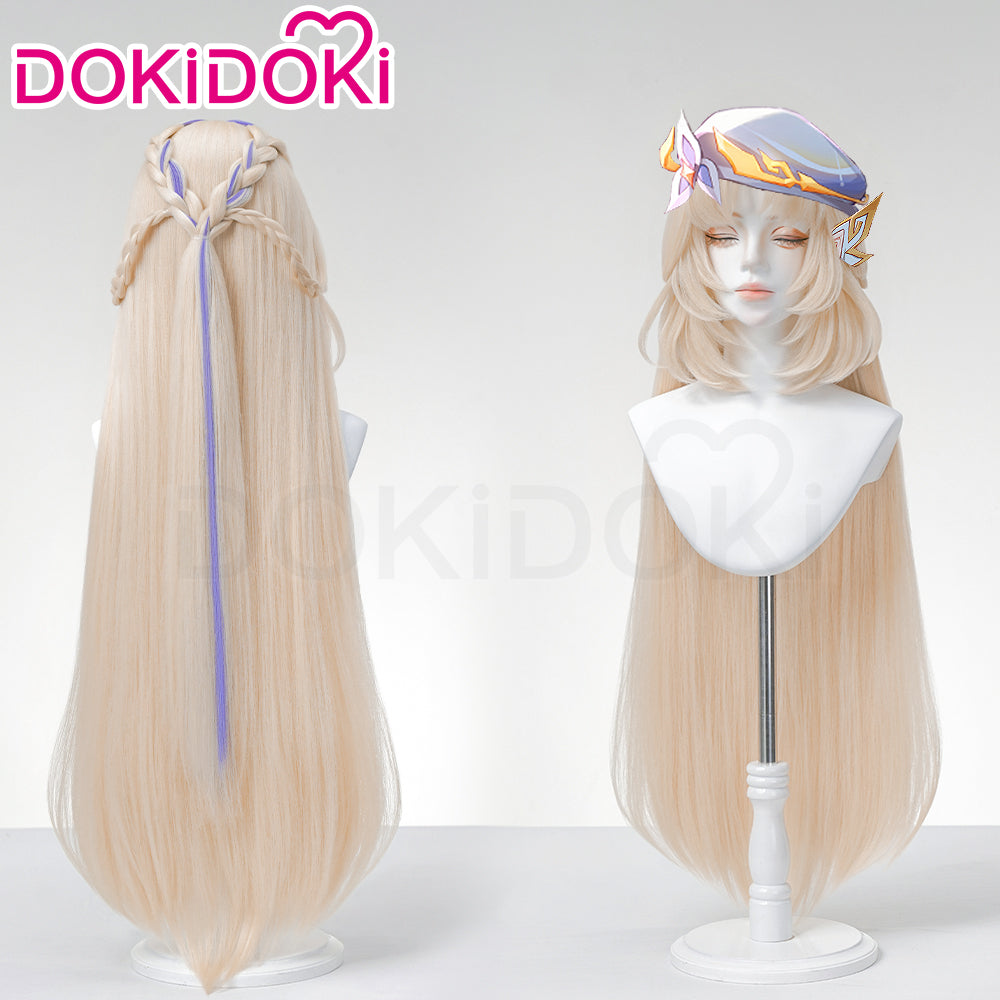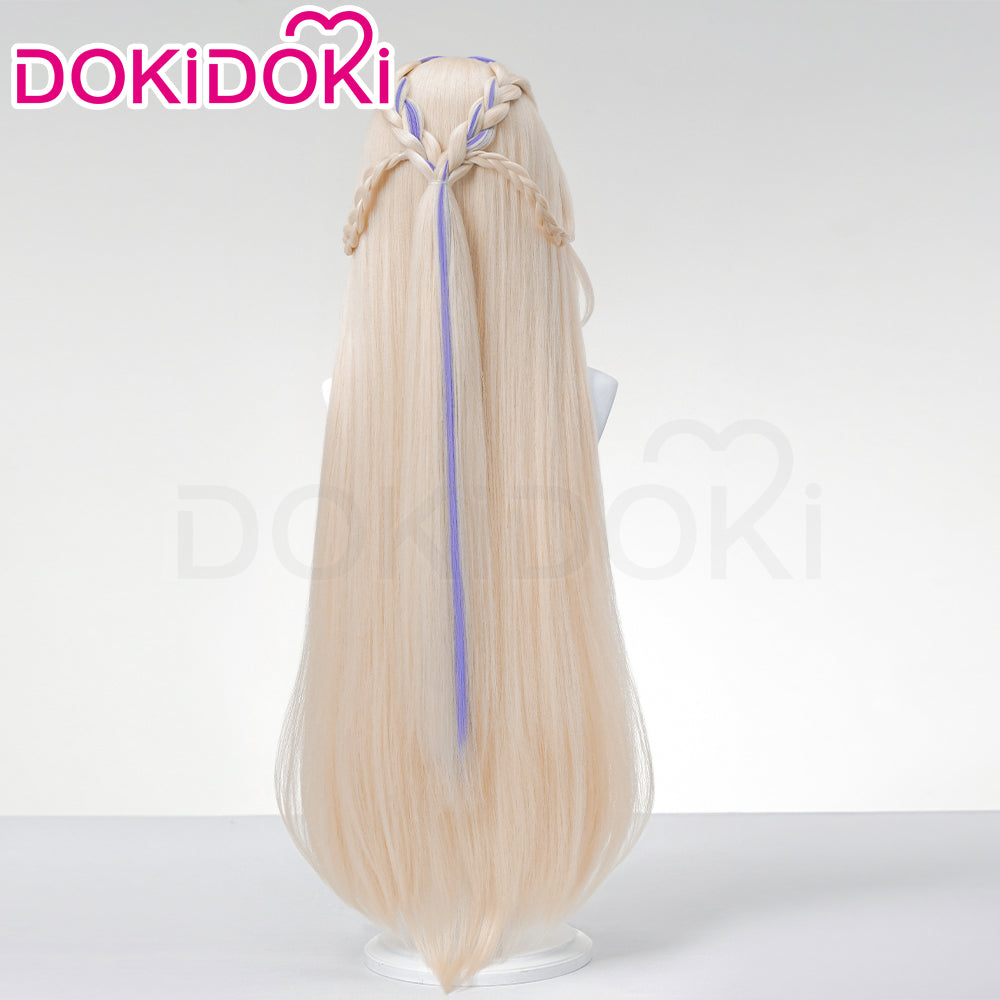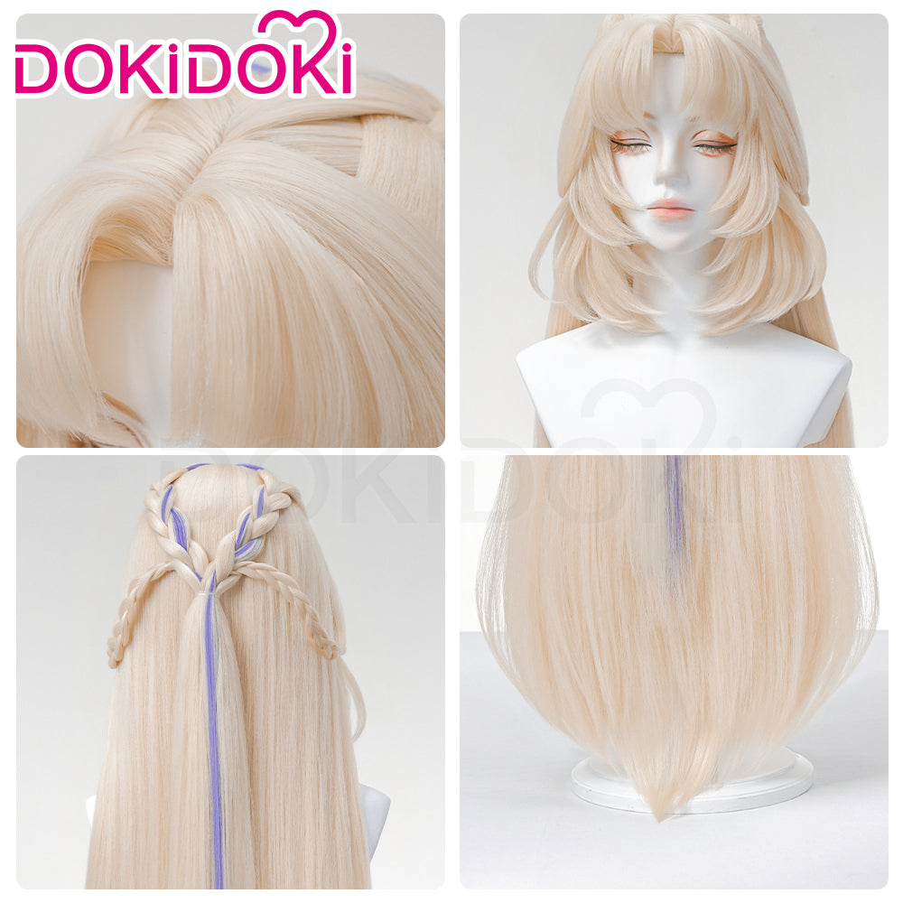DokiDoki Game Genshin Impact Cosplay Nicole Reeyn Wig Long Straight Light Blonde Purple Highlight Hair " N " Song of the Welkin Moon
