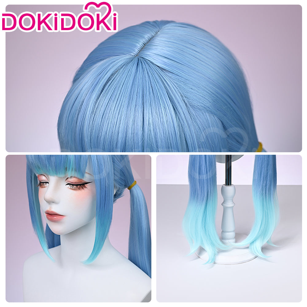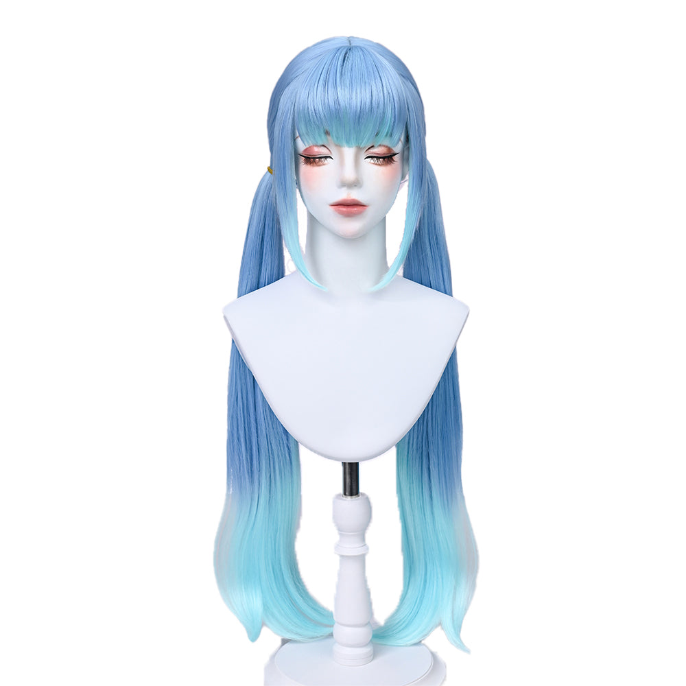 DokiDoki Game Honkai: Nexus Anima Cosplay Nanafey Wig Long Straight Blue Gradient Hair Twin Tails