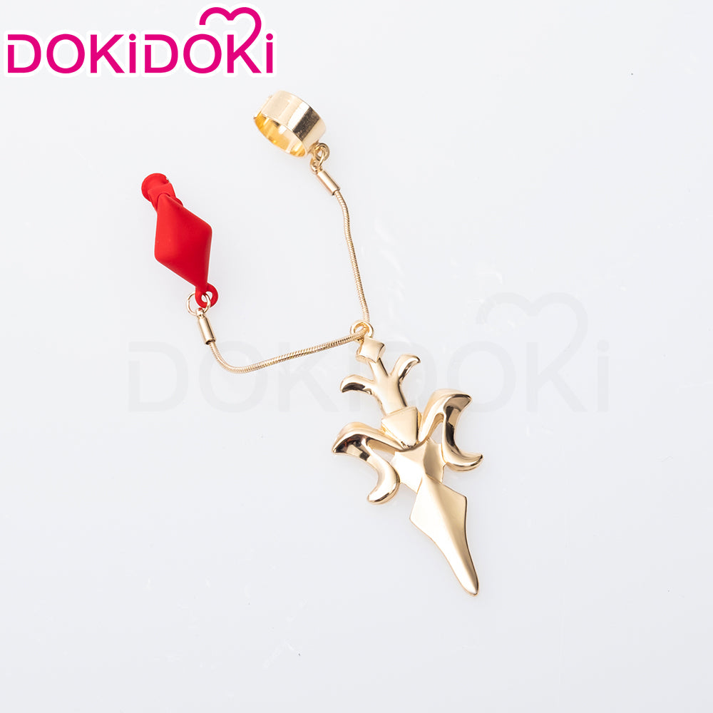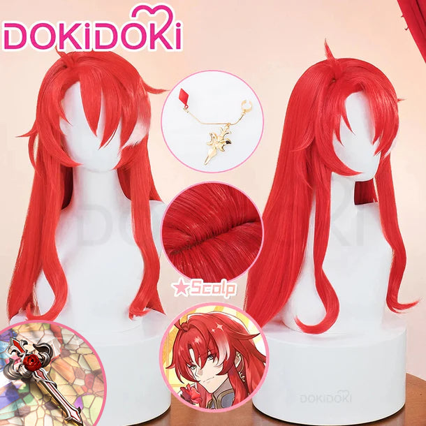 【Ready For Ship】DokiDoki Game Honkai: Star Rail Cosplay Argenti Wig Long Curly Red Hair / Earring / Cross