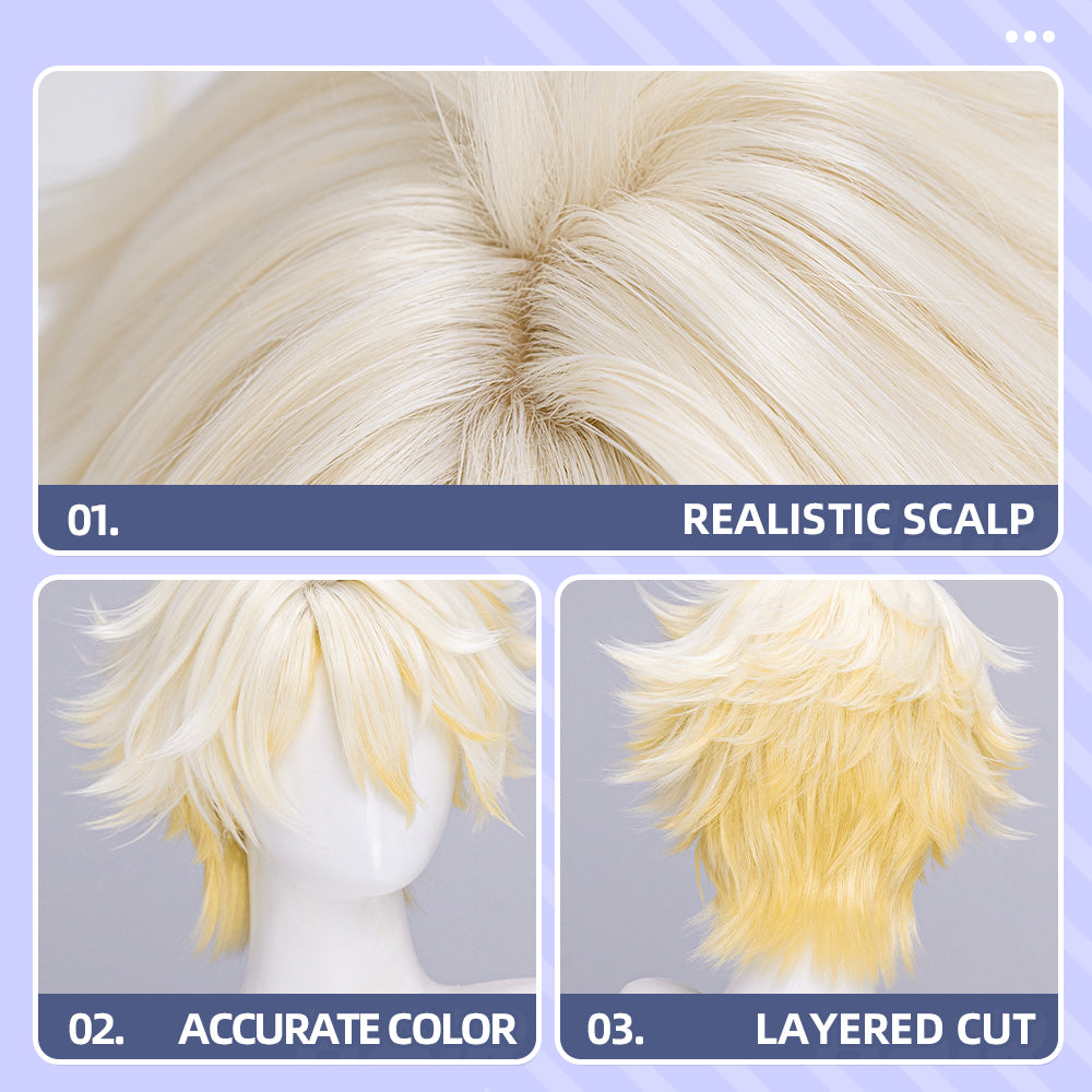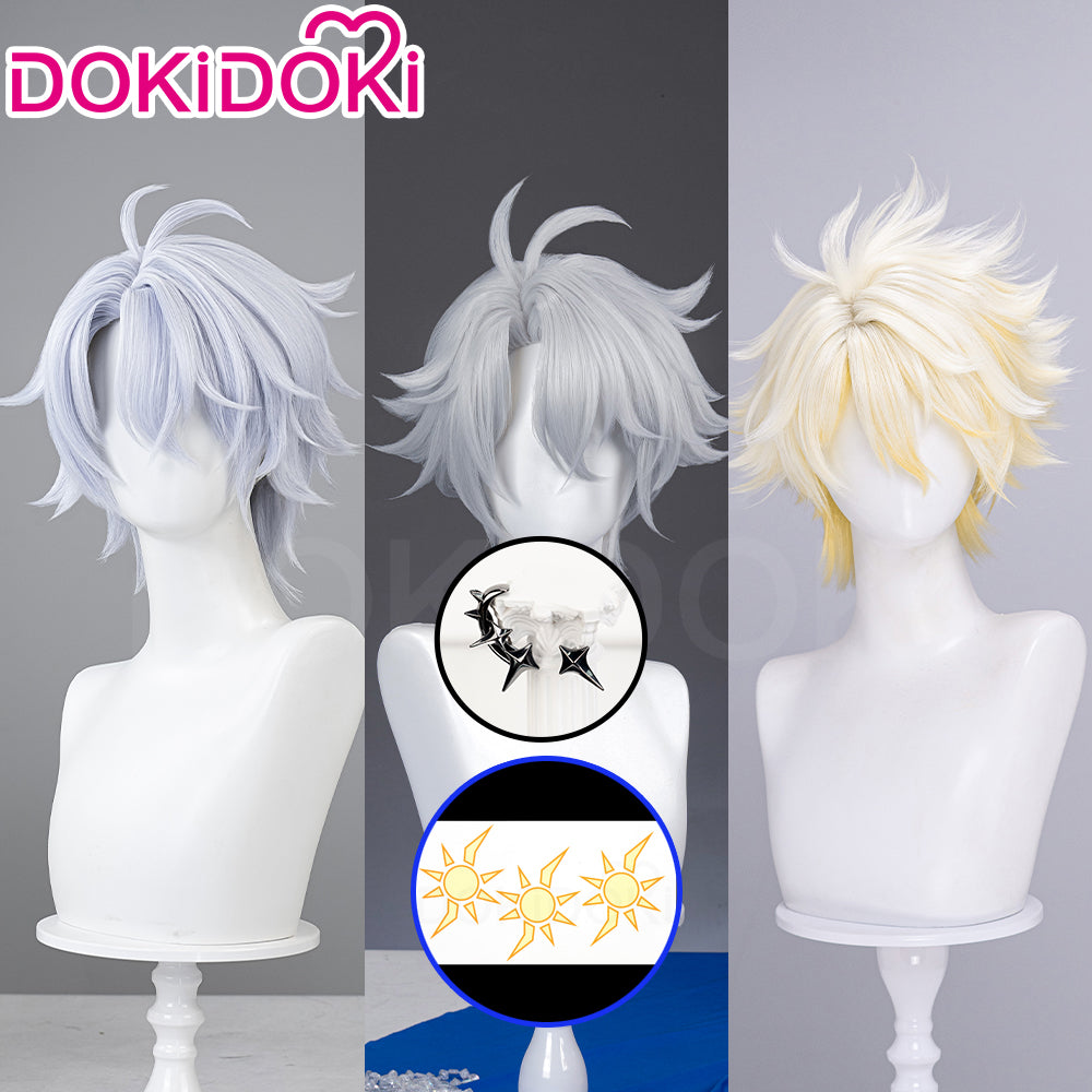 【Partially Ready For Ship】DokiDoki Game Honkai: Star Rail Cosplay Phainon Wig / Weft / Tattoo / Ear Clips Short Straight Silver Hair Darkening