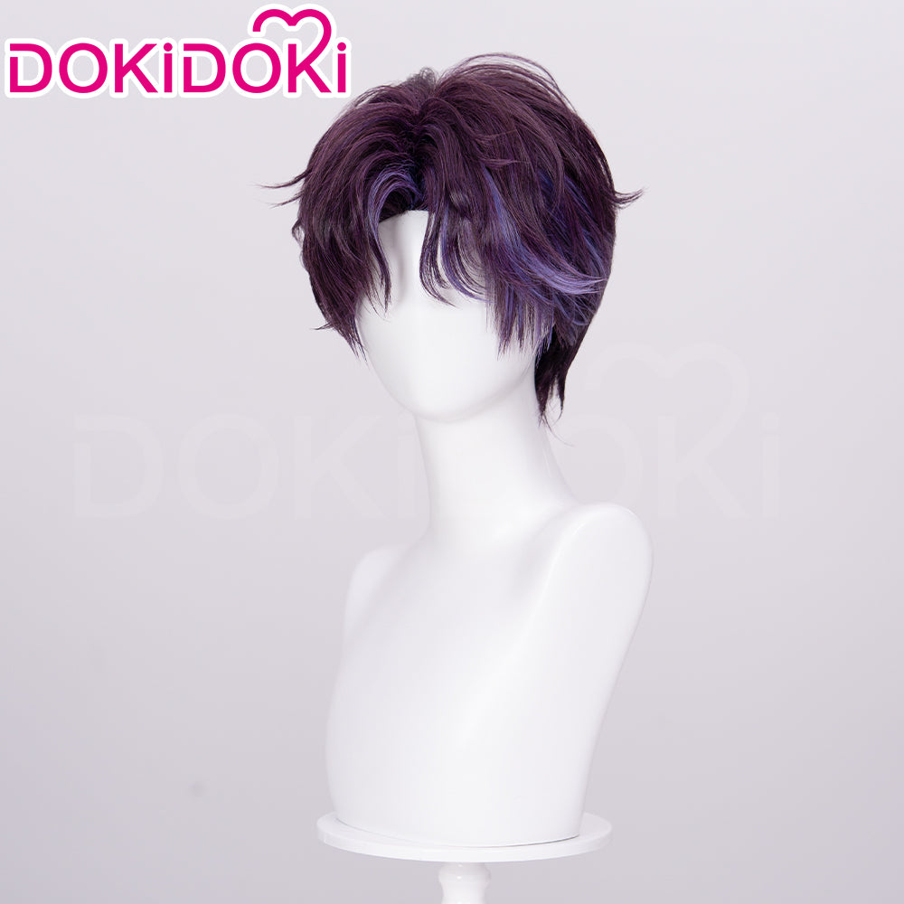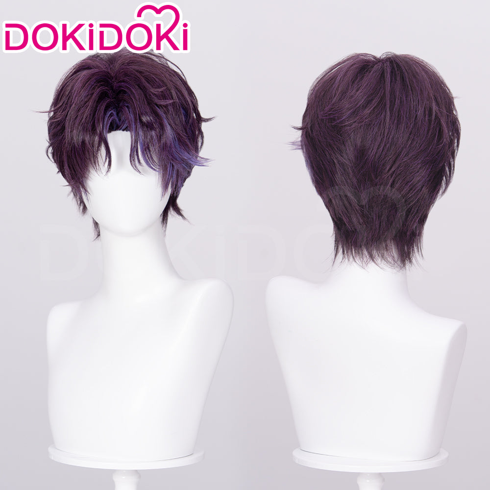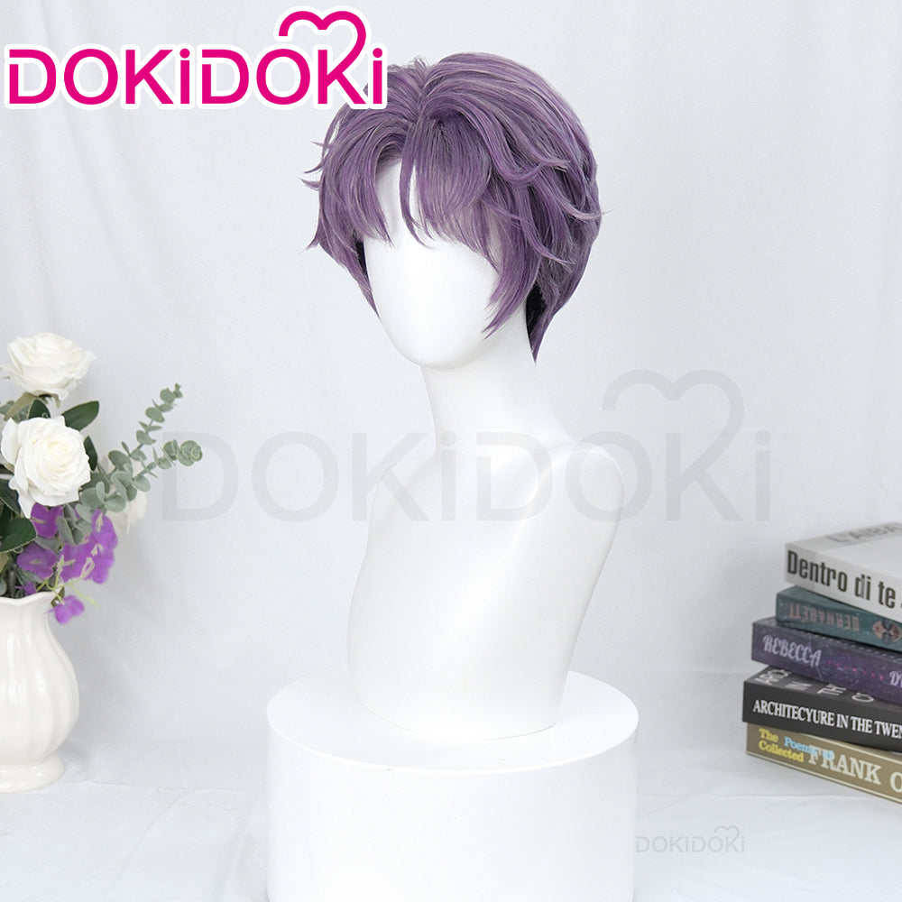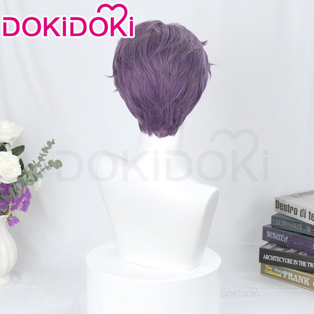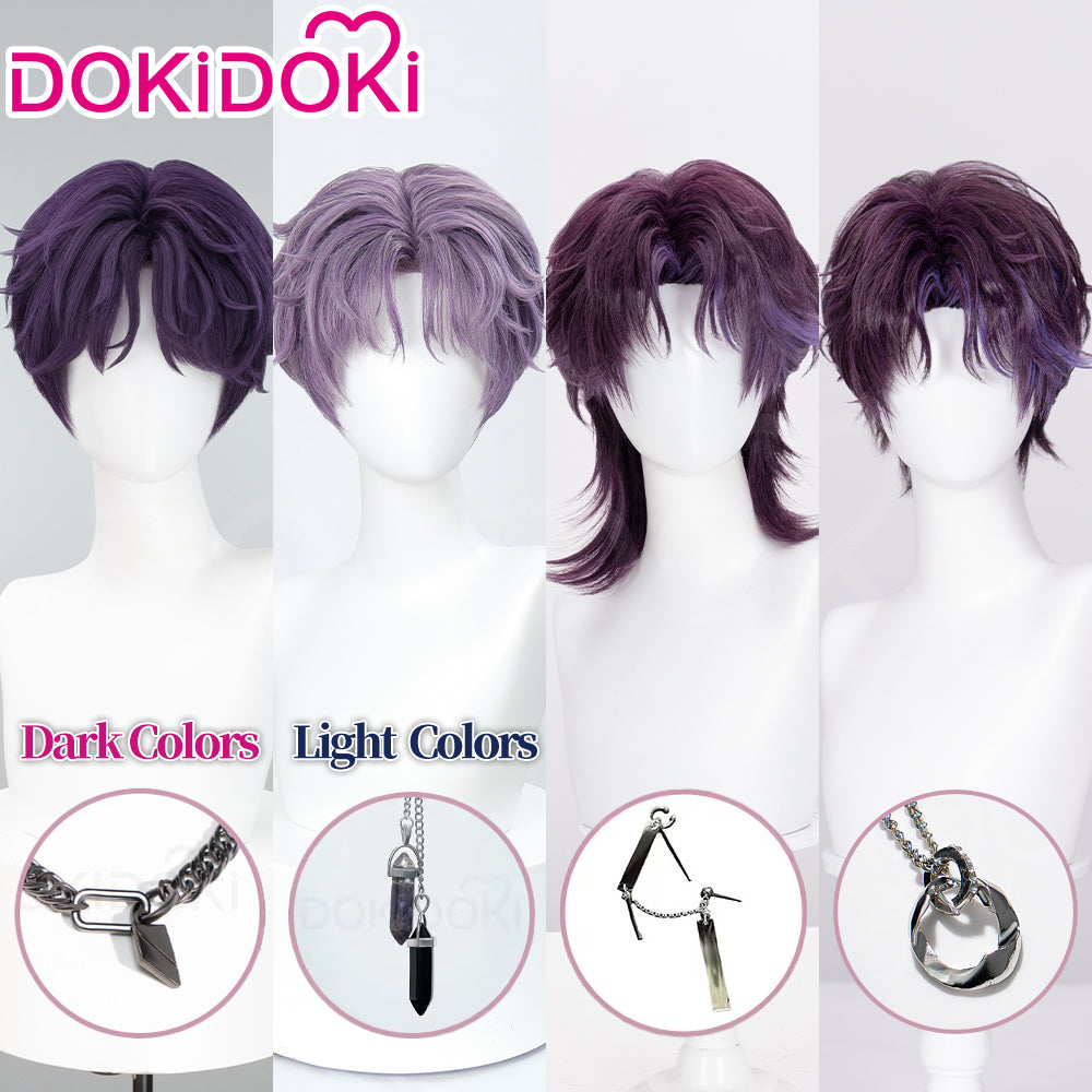 【Partially Ready For Ship】DokiDoki Game Love and Deepspace Cosplay Rafayel Wig / Ear Clip / Necklace Short Purple Hair Mullet Tidal Surge