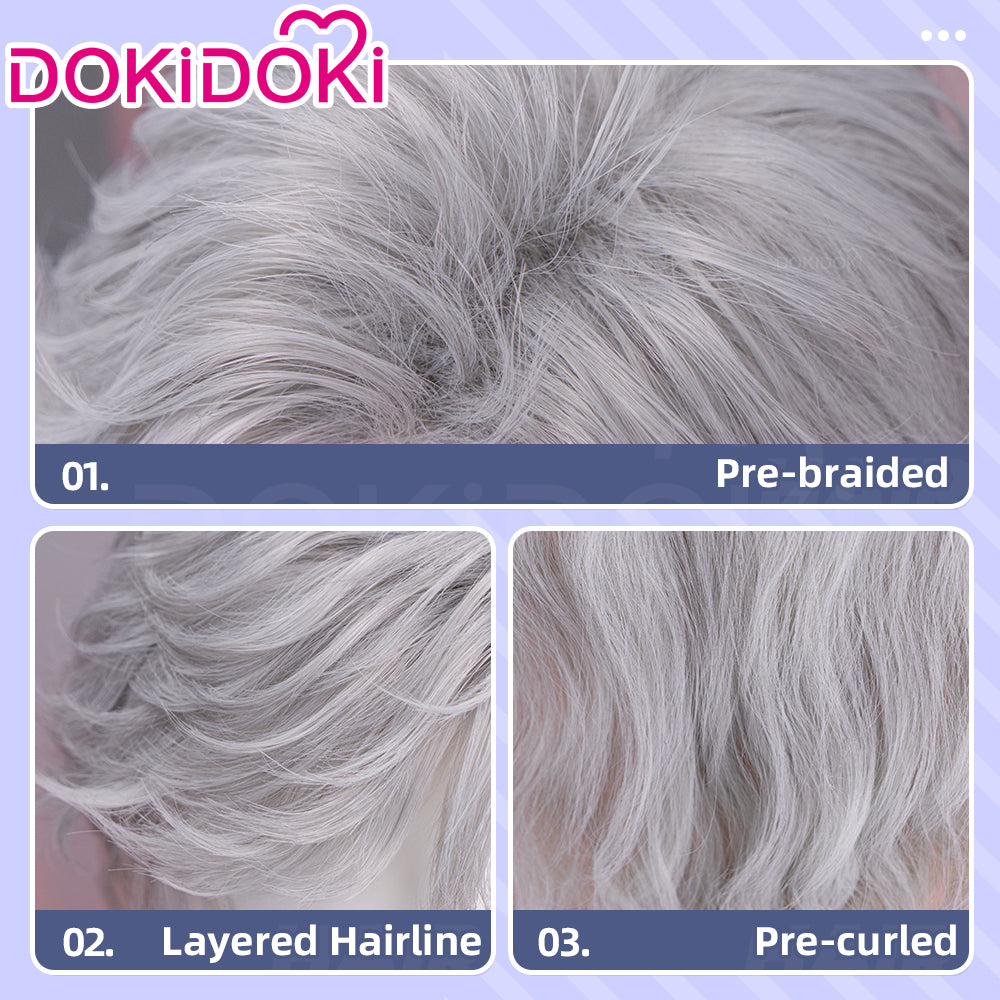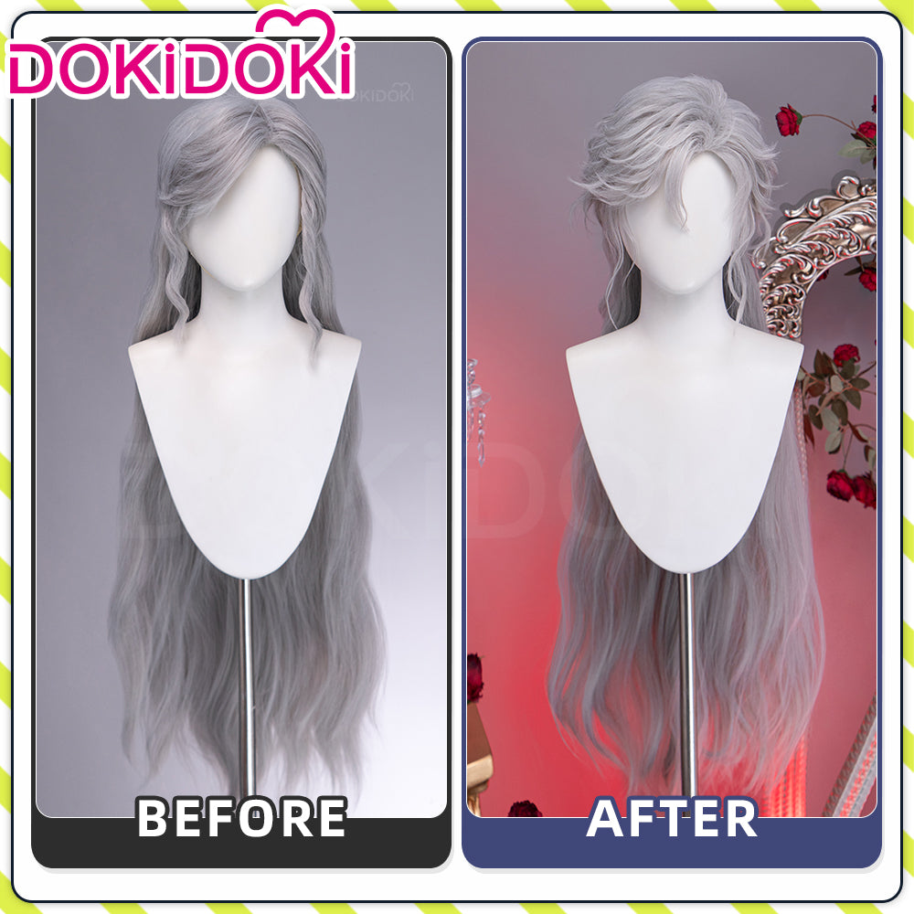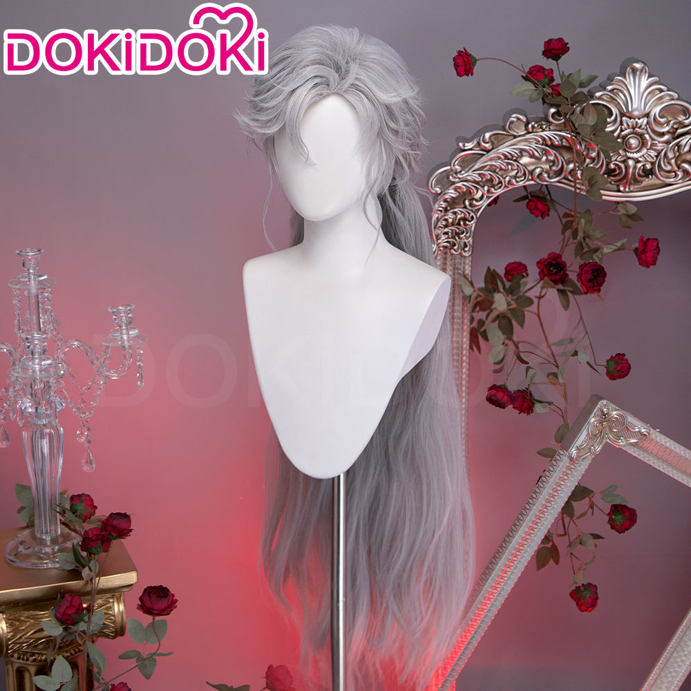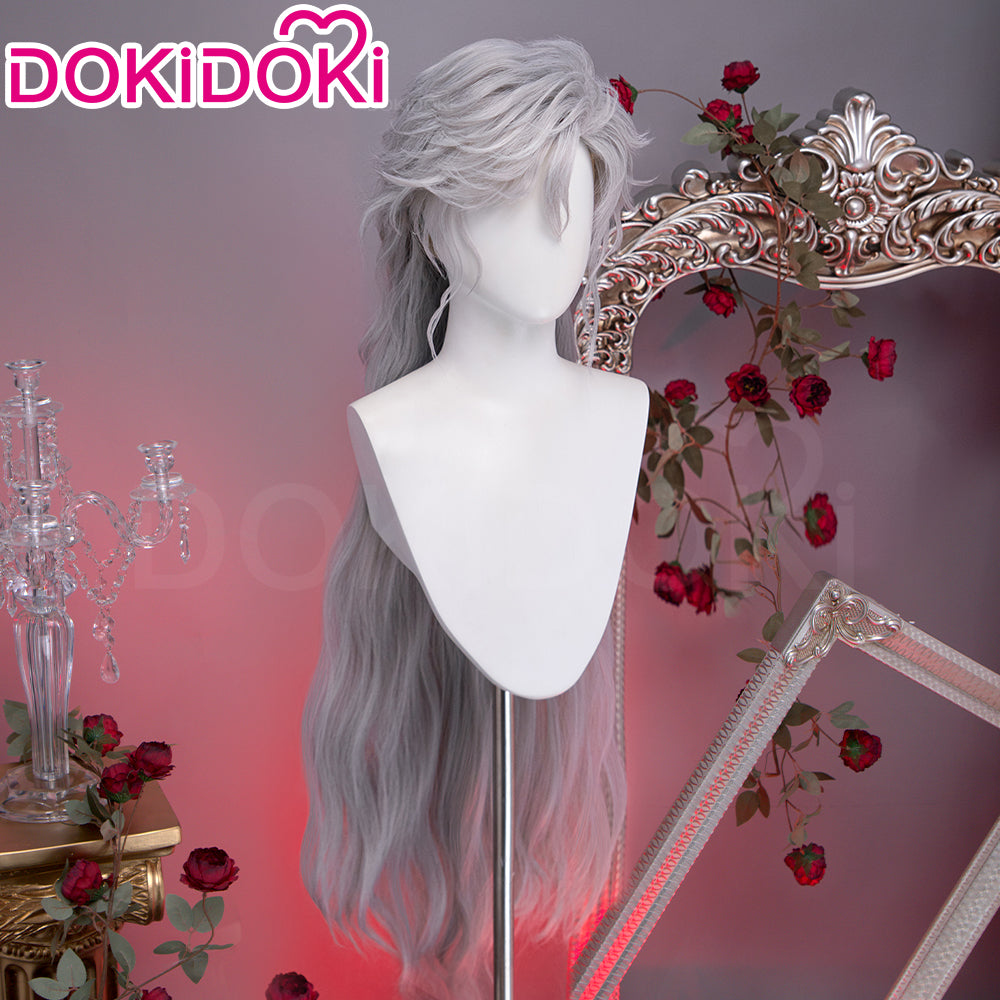 【Ready For Ship】【Front Lace】DokiDoki Game Love and Deepspace Cosplay Sylus Wig Long Curly Silver Hair Silverwing Fiend