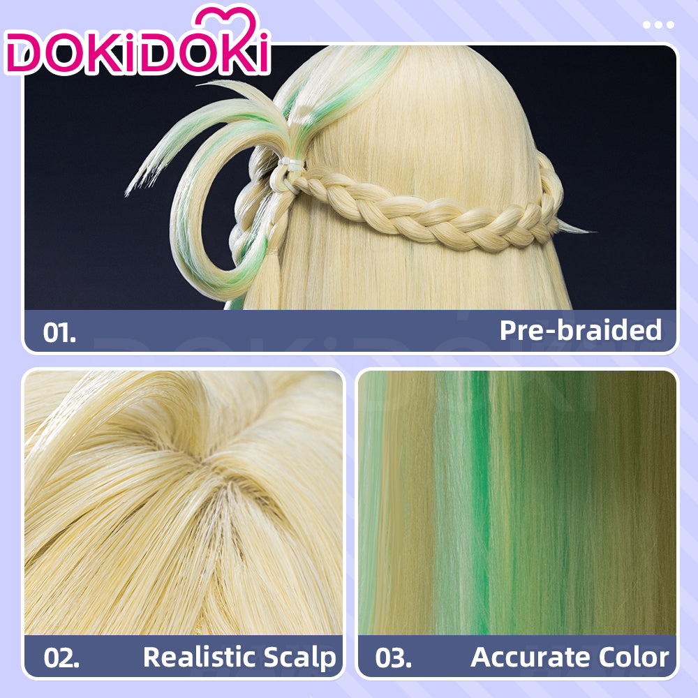【 Ready For Ship】DokiDoki Game Wuthering Waves Cosplay Lynae Wig Long Straight Blonde Green Hightlight Hair
