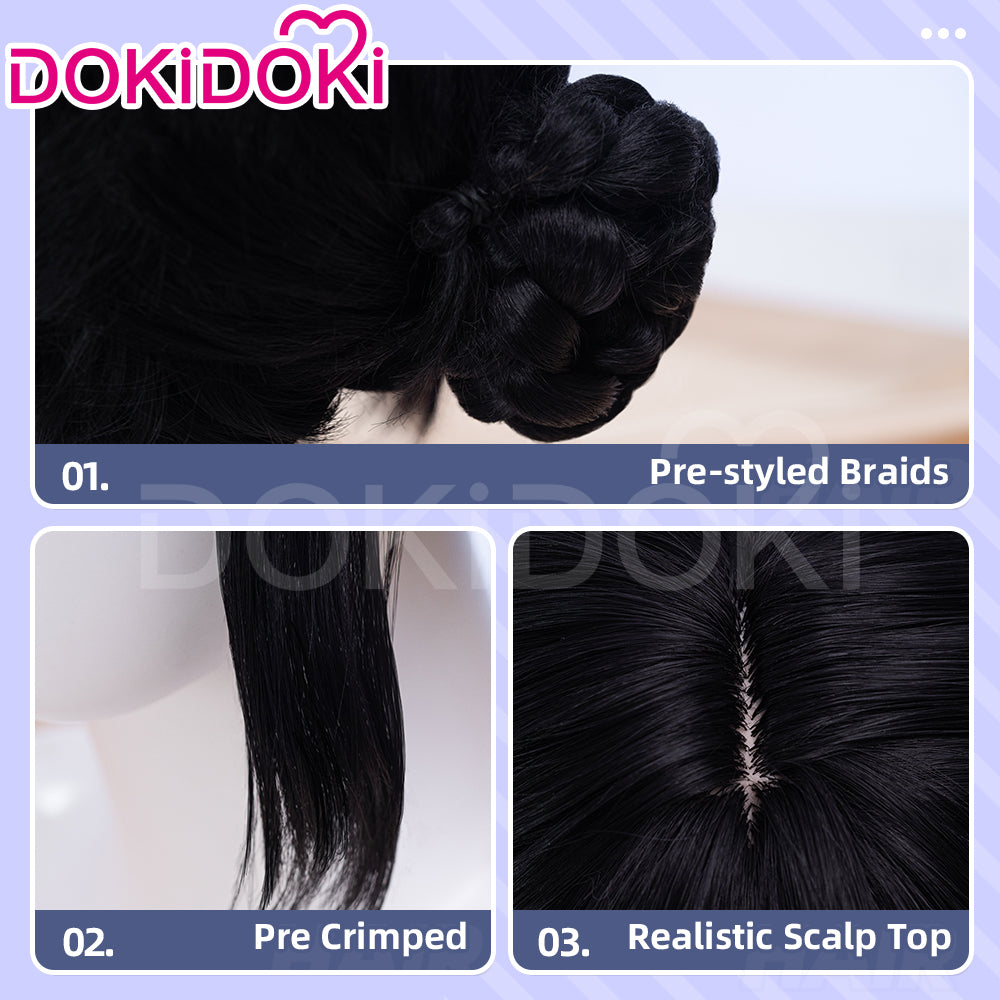 【US/EU LOCAL SHIPPING 】DokiDoki Movie Anime Cosplay Women Wig / Earrings / Hat Short Black Hair Double Buns