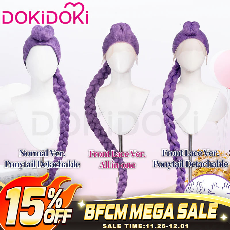 【Partially Ready For Ship】【120 CM】【FRONT LACE】DokiDoki Movie Anime Cosplay Women Wig / Weft / Pattern Tattoo / Earring Set / Headpieces Long Purple Hair Braid
