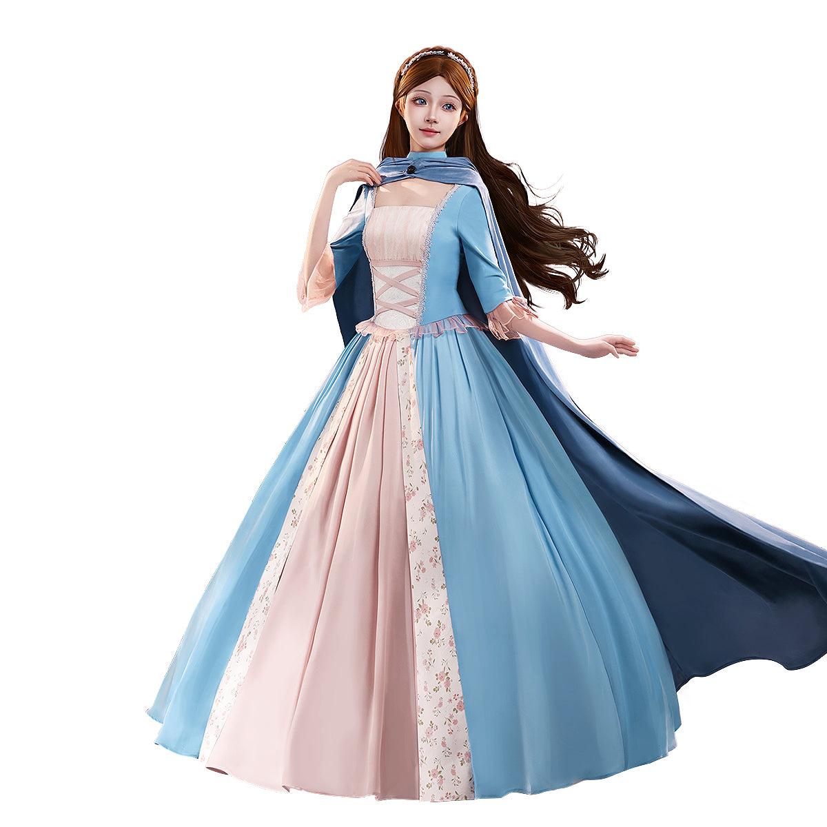 【Size S-3XL】DokiDoki-SR Movie Cosplay Costume Blue Princess Dress / Cloak