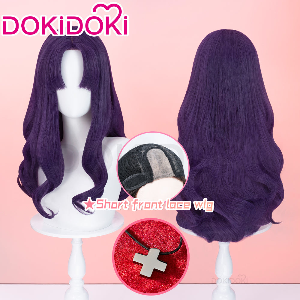 【Wig Ready For Ship】【Front Lace】DokiDoki Anime Cosplay Wig Long Curly Purple Wig / Hat/ Necklace