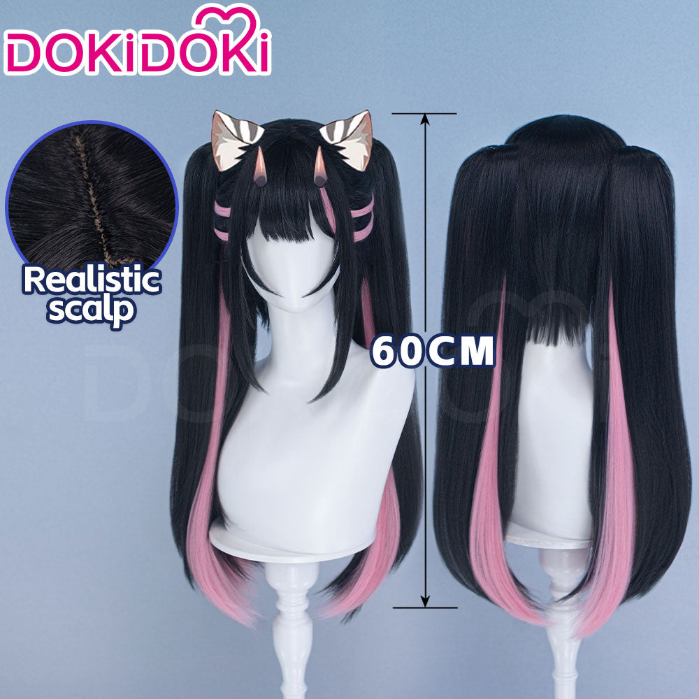 DokiDoki Anime Cosmic Princess Kaguya! Cosplay Komazawa Noi Wig Long Straight Black Pink Highlight Hair Twin Tails