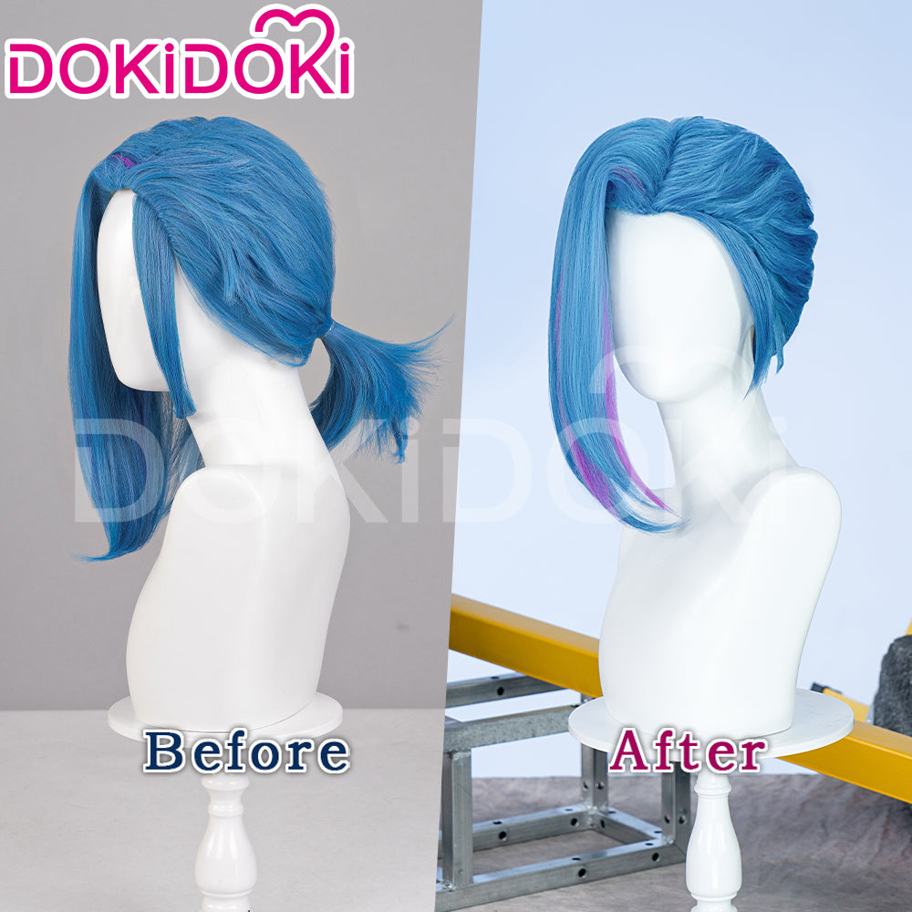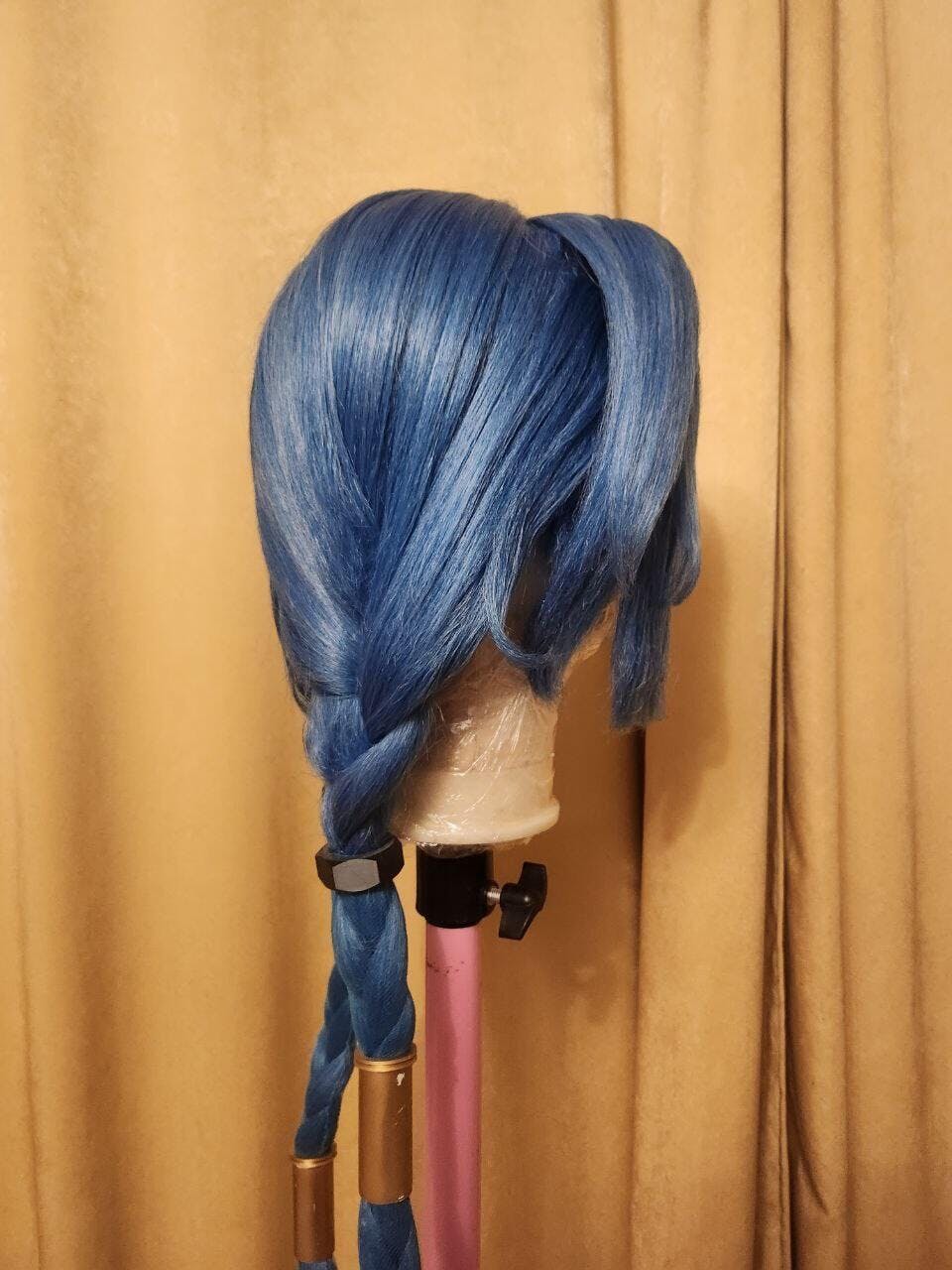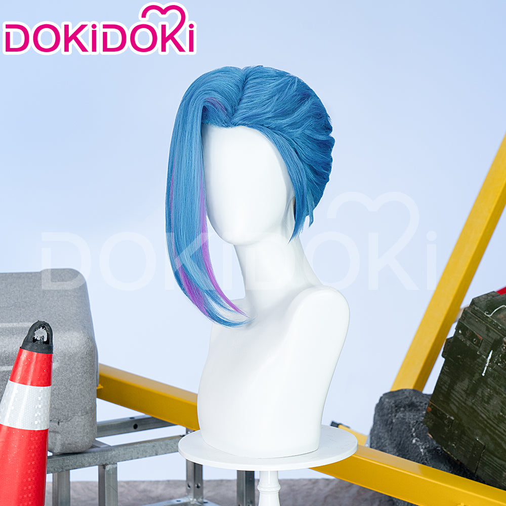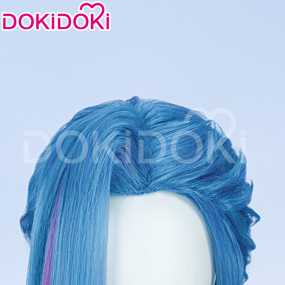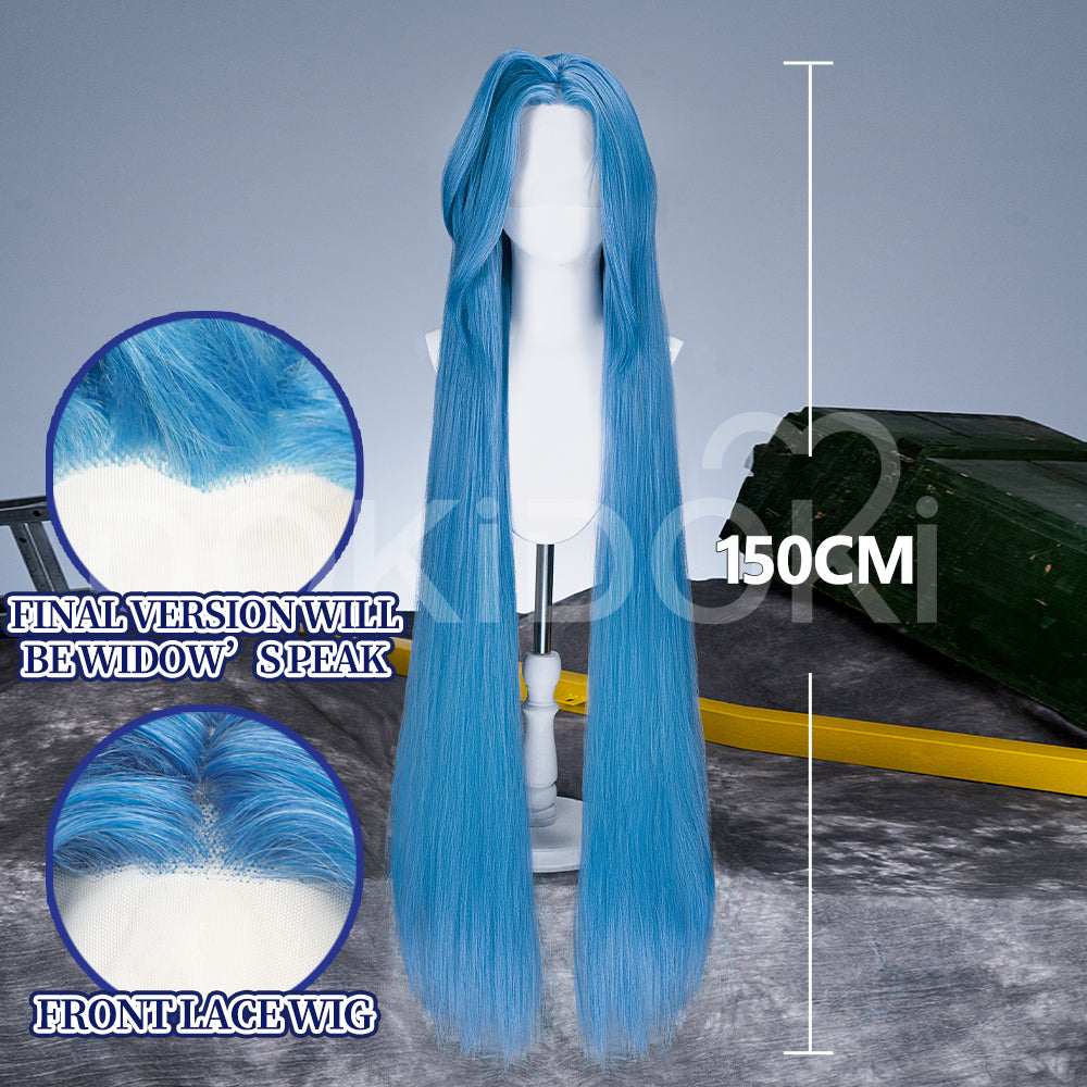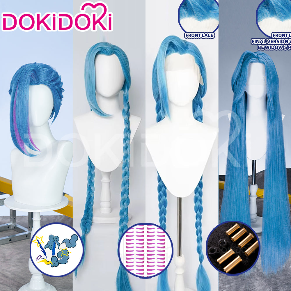 【Partially Ready For Ship】【Front Lace】DokiDoki Anime Game Cosplay Wig Blue Braided Pigtail / Hairtied / Long Straight Version Hair / Tattoo Sticker / Necklace / Bullet Headwear