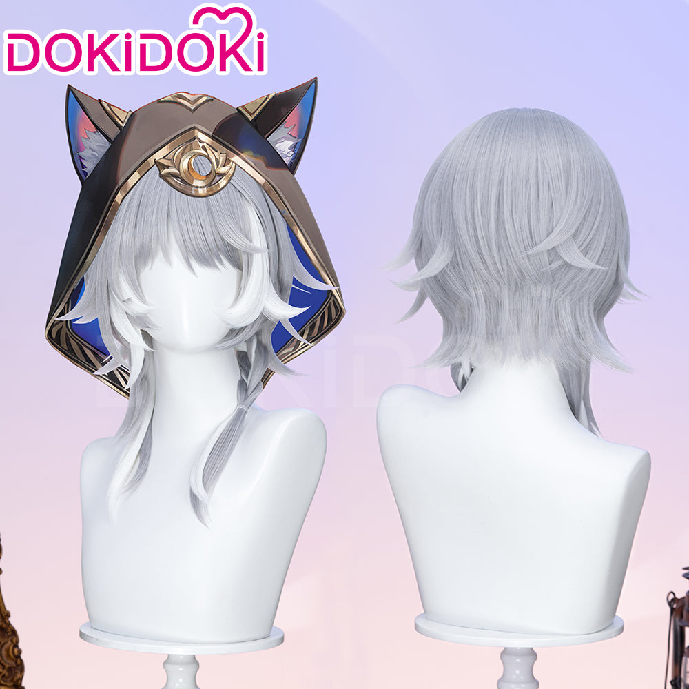 【Ready For Ship】DokiDoki Game Honkai: Star Rail Cosplay Cipher Wig Long Straight Blue Gray White Highlights Hair