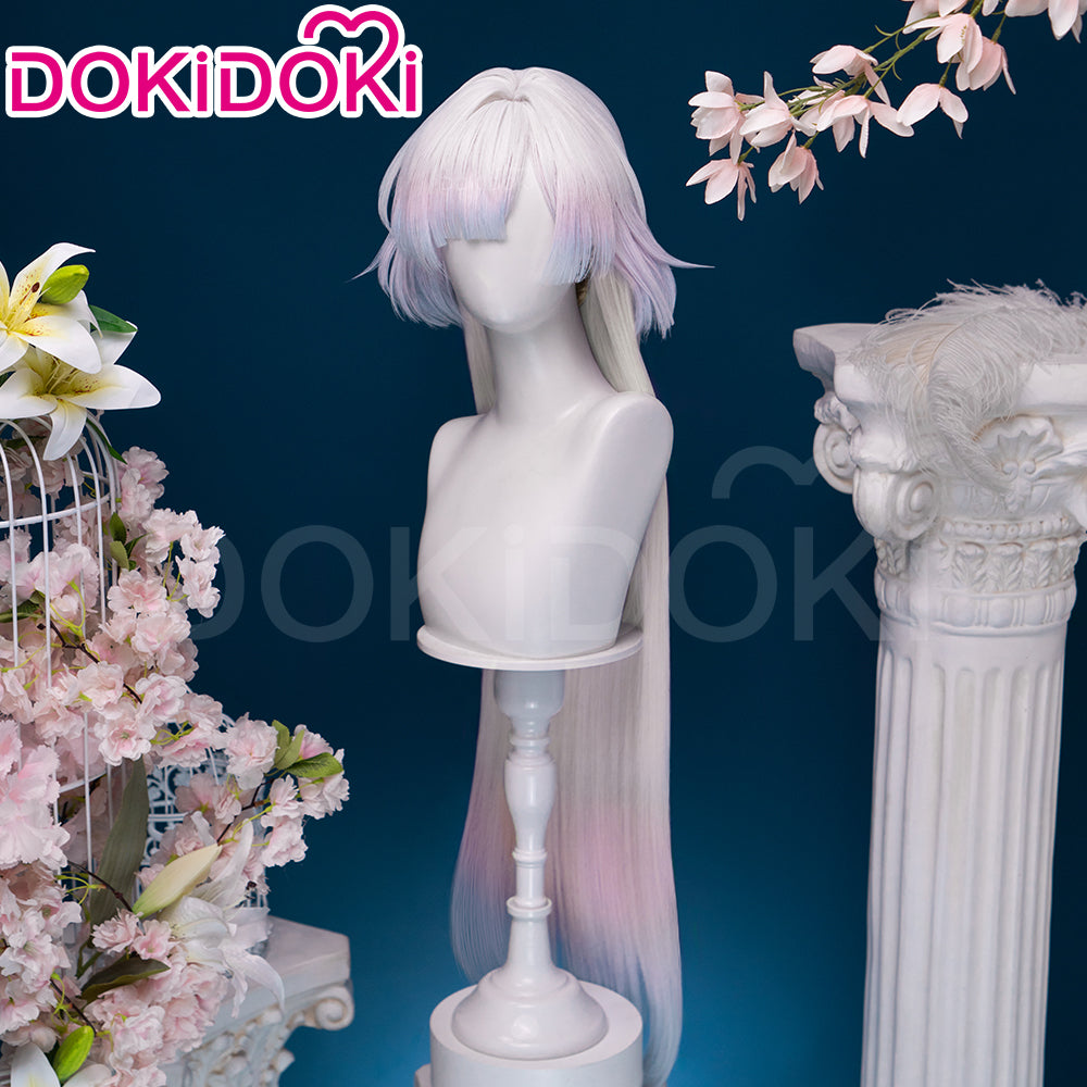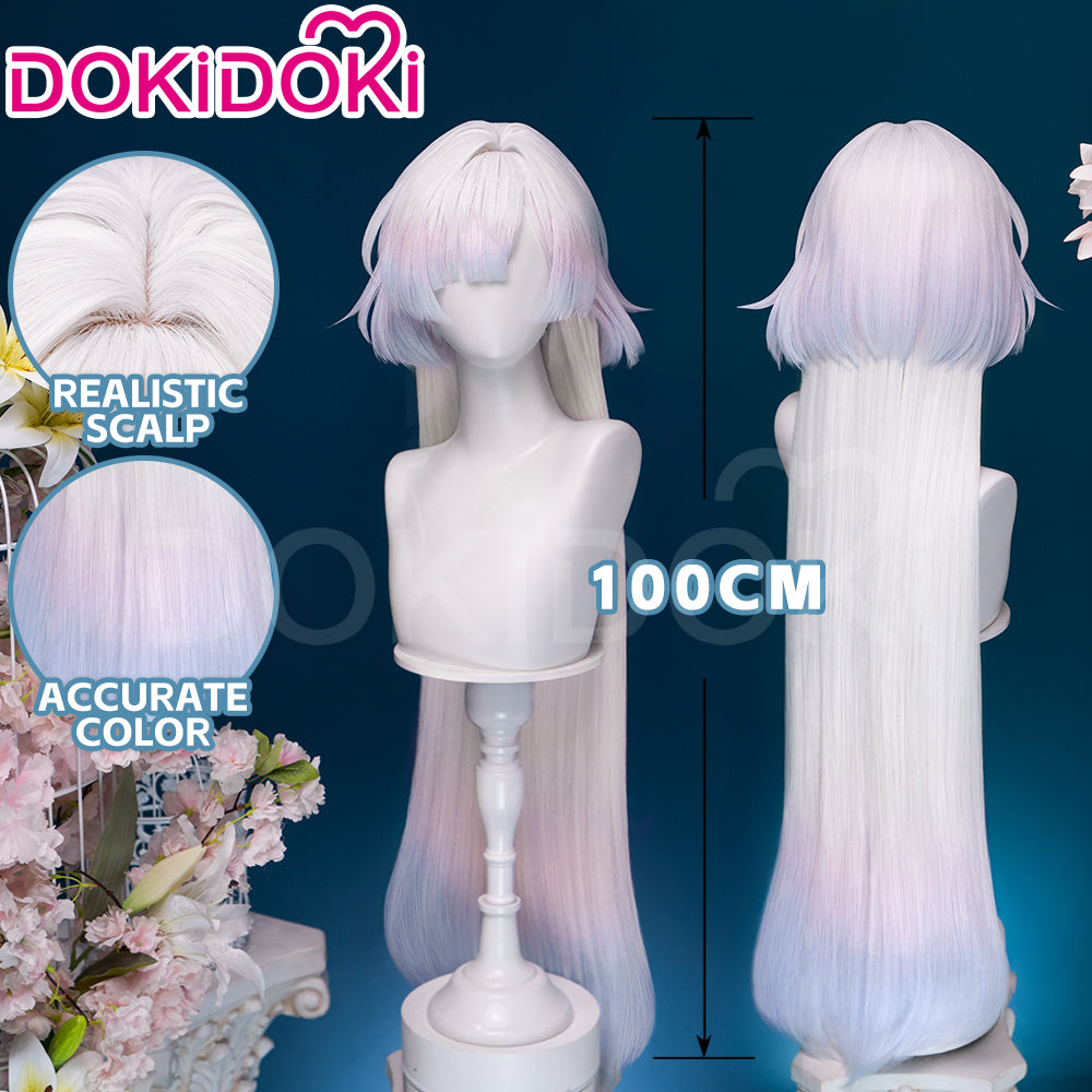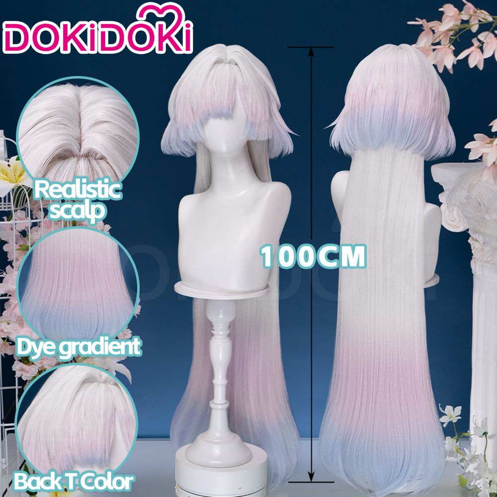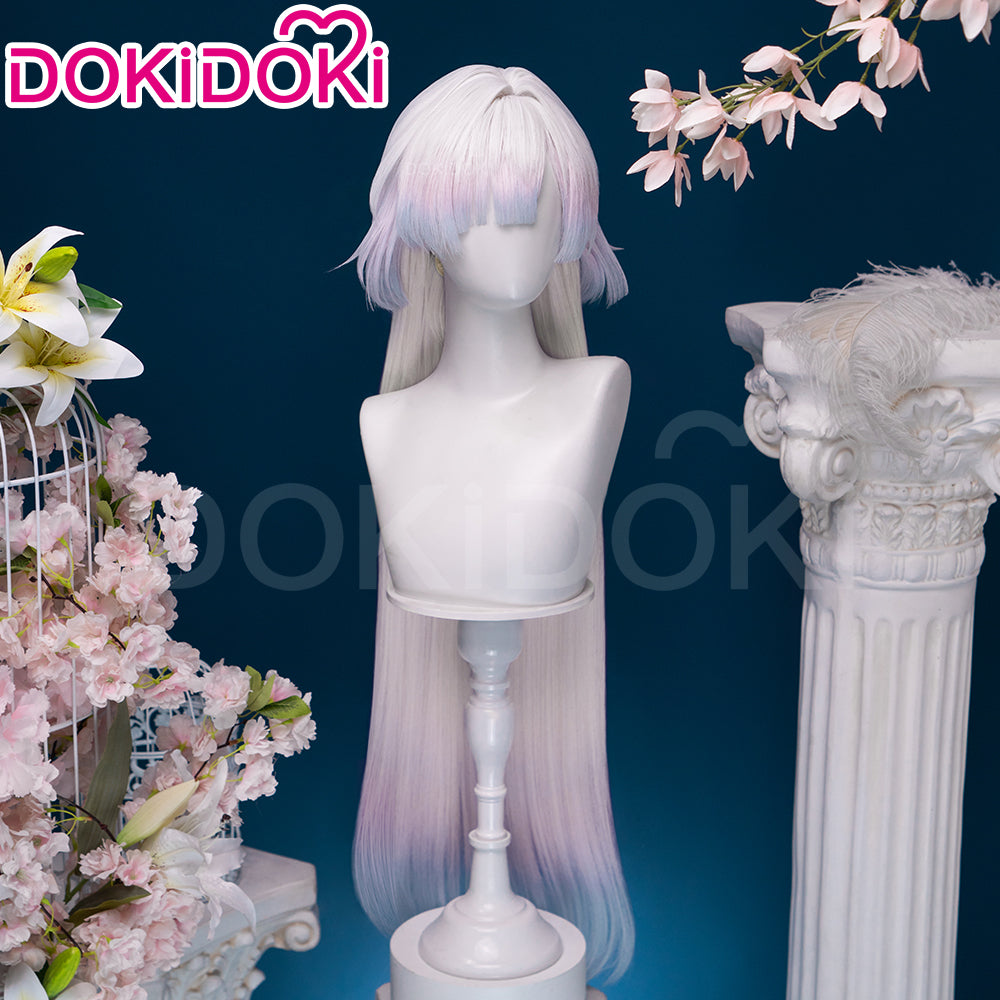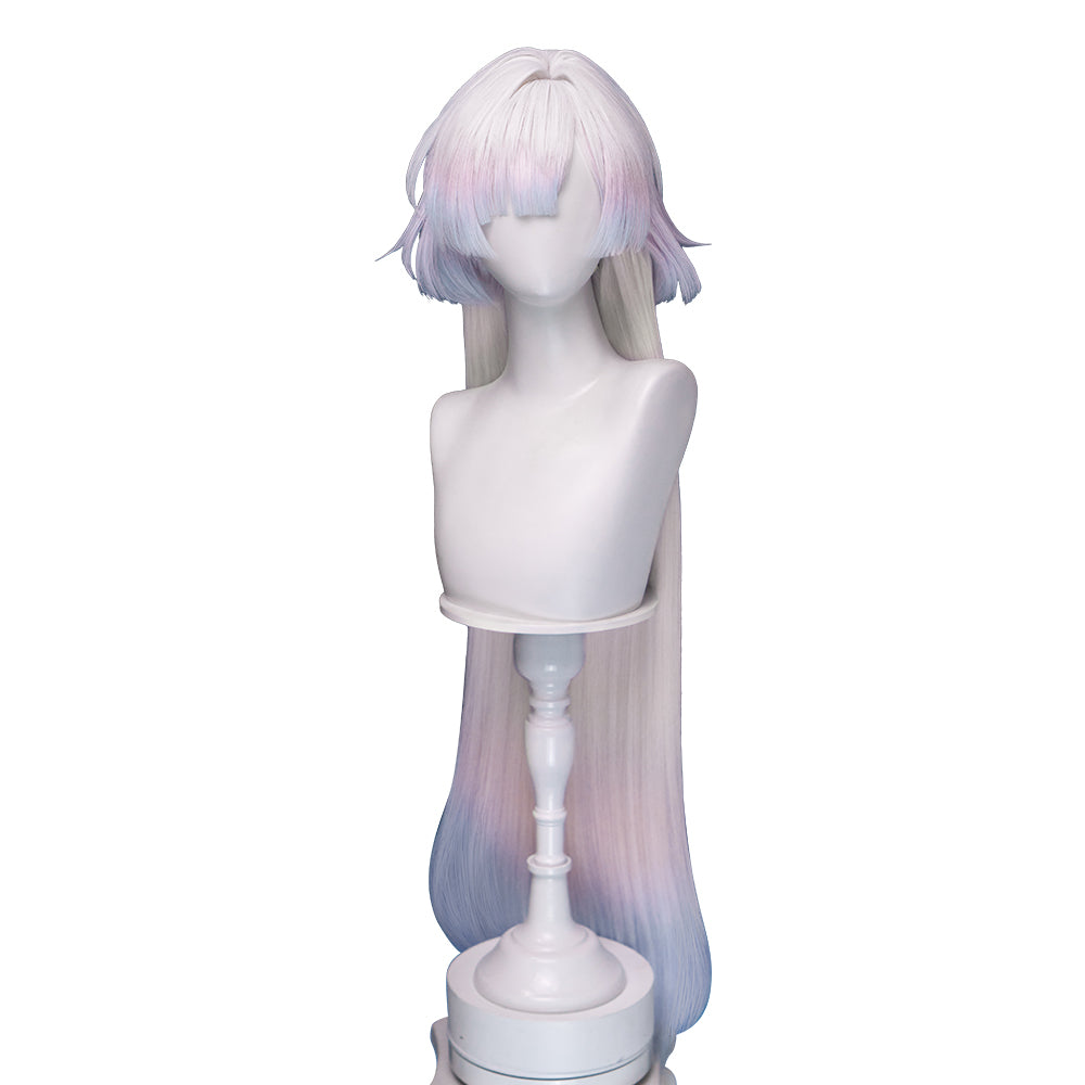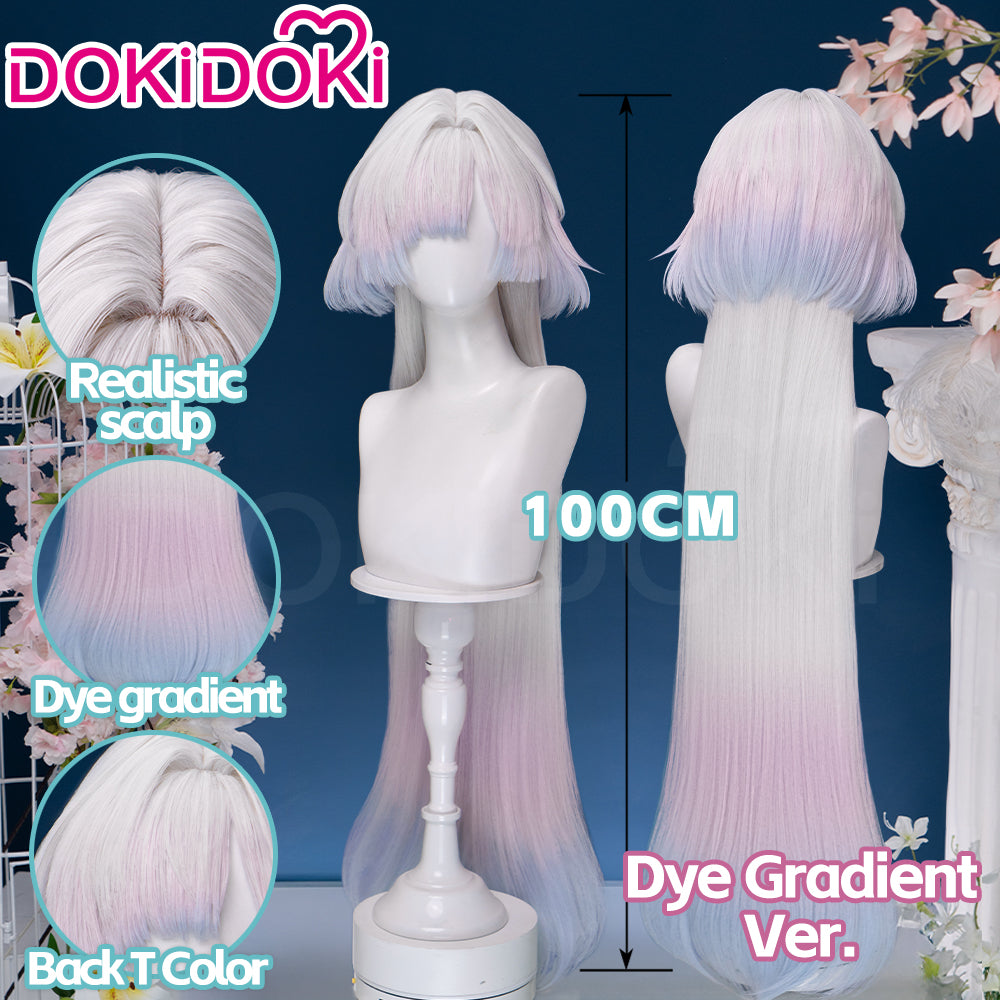 DokiDoki Game Wuthering Waves Cosplay Mornye Wig Long Straight Silver Light Pink Blue Dye Gradient / Back T Color Hair
