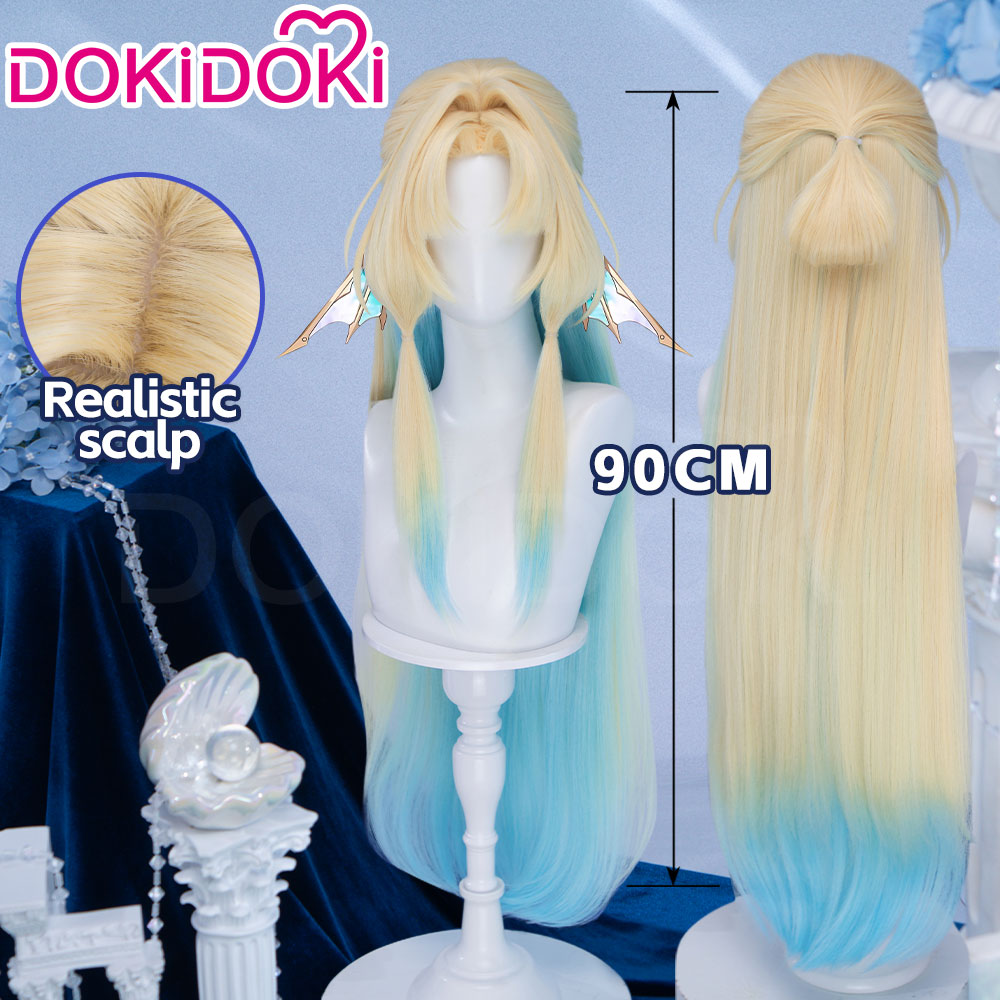 DokiDoki Honkai: Star Rail Cosplay Pearl Wig Long Straight Blonde Blue Gradient Hair Ten Stonehearts